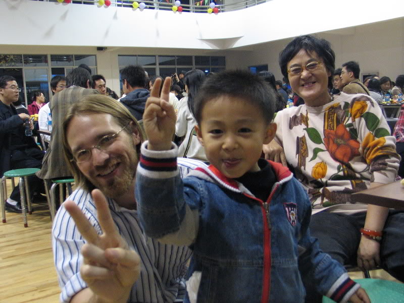 2. Cute photo of you with the youngster flashing peace signs. I wonder about the apparent disconnect between the Chinese individuals which evidently are so welcoming of and friendly to you, and the Chinese government, which is noted in international circles for, well, some other things. What is the local buzz about the upcoming Olympics? Is there ever any comment about the Chinese relationship with North Korea?