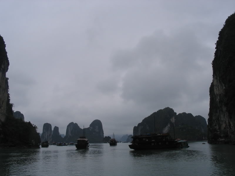 We also made the time for the long trip out to the Vietnamese coast to visit Ha Long Bay, the bay of the descending dragon. The legend goes that in ancient times, a dragon came down from the heavens to, I believe, ward off invading Chinese. It carved great gashes through the land, which over time flooded, leaving what is now the landscape of sharp limestone mountains towering over blue waters far as the eye can see. It is a beautiful sight, even in hazy, rainy weather. Along the way, we paid a visit to a pair of caves, the first garishly adorned with a number of lights, the second, according to our guide, was ‘not so pretty’. I assumed this to mean undecorated. Low and behold, it was largely in its natural state and proved wonderful for a quick walk through.