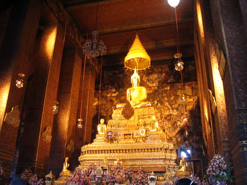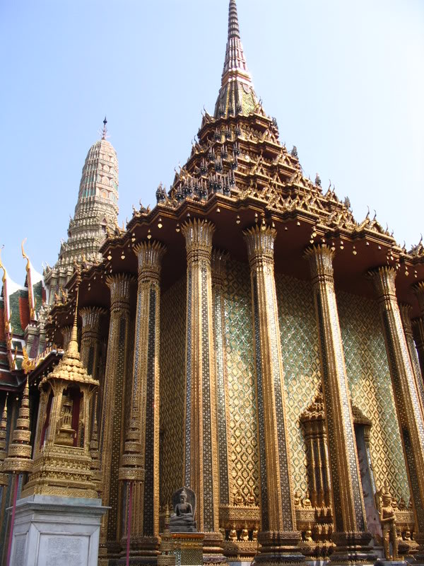 We stayed near the Khoi San area, the central tourist zone. Normally this is something I would attempt to avoid, however as we had only a pair of days in which to enjoy the city, it was a compromise for being close to the major sites. Our first full day we spent time exploring our neighborhood, which is at least half Western if not more, to judge by faces alone. We were near the Chao Praya river and ended up doing an hour long tour of the canals by longtail boat. Lining the banks are homes of various repair and value, making for an engaging architectural tour as well as a pleasant window into local life away from the hustle and bustle of the busier streets. As chance would have it, neither Katy or I had our cameras with us, or I would share pictures.