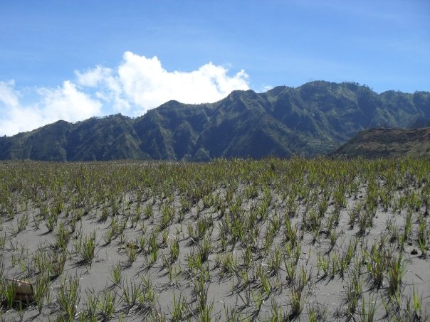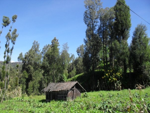 Arriving was arduous, a night of fitful rest at the Kuala Lumpur airport food court (third time now…) before a long day of bus rides and bus stations that finally deposited me in the mountain town of Cemoro Lawang.  More than 2000 meters up over see level, it is a fantastic landscape of steep hillsides bathed in every shade of green imaginable.  The villages cling to the roads winding up the valleys towards the peaks.  The island of Java is part of the ring of fire, a victim to frequent natural disasters.  Here, they have turned that to a profit with the tourist trade visiting Mount Bromo, a still smoldering volcano.  I did the long hike from my guest house, or losmen, up to the volcanic cone.  I managed to sunburn myself nicely, but the hike was fantastic and it was pretty cool to hike across a caldera filled with ash to see this geologic thing belching out sulfuric clouds.