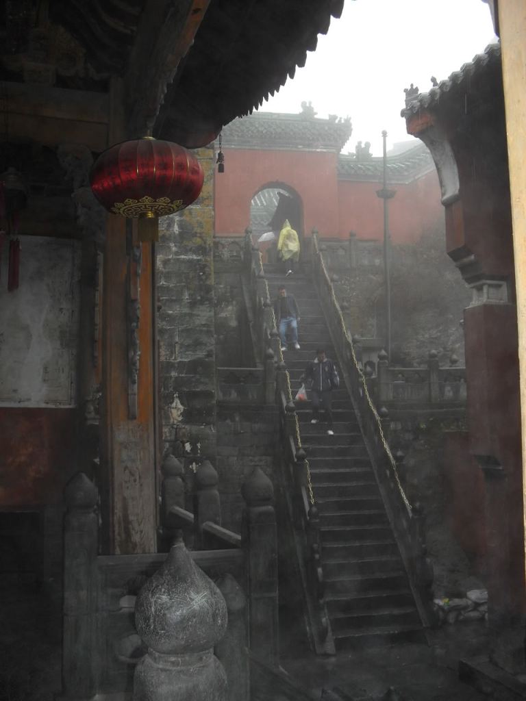Bumping along in the packed bus, I found I was seated by a real estate agent who enjoyed speaking English. She was from the Wudangshan City and insisted on helping me find a hotel and negotiating a good price. So we did that and she left me off at a restaurant where I had a fantastic green pepper/beef/mushroom rice dish that was perfectly spicy for a cool night. The weather had conspired against me to this point, and the next day would prove no better as the mists grew and rain increased with each step I made through Wudang Mountain. The trails were busy with the hum of the Chinese tourist industry, always on hand to overcharge and wash away any lingering mystique.