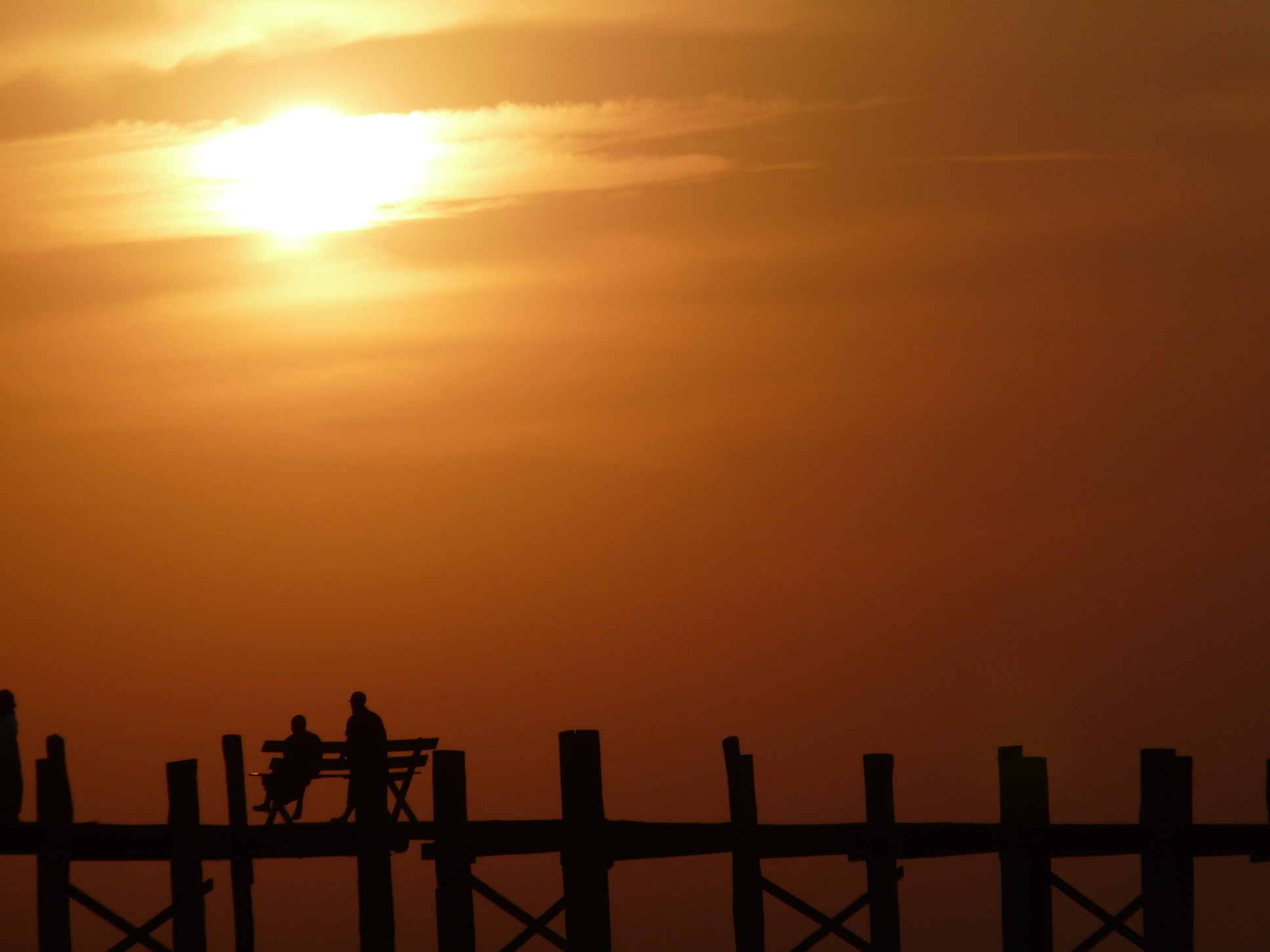 Mandalay is a name that is present in people’s mind, if not for the works of Rudyard Kipling than at least for the prominence of Las Vegas and her casinos in present day society. Whatever romantic evocations the name may hold were quickly quashed for me in the functional but somewhat listless city. Regardless of said circumstances, we rented bikes, bought outbound train tickets for the next day, and rolled off down the road in the remaining cool of morning for Amarapura, one of the many old capitals set outside the city limits a ways. The main highlight here was a lengthy teak bridge that still seems to be in use as a means of crossing over the seasonal waterways that swamp the land.