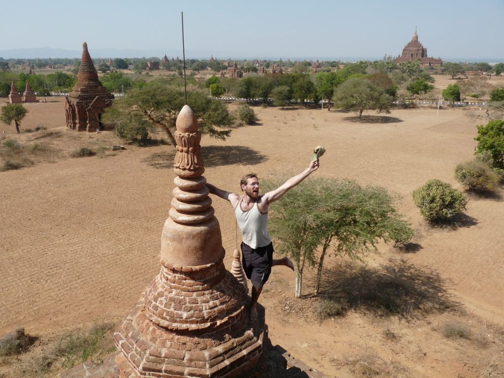 The next day, rested and healthy again, I joined my friends for ventures around the temples. Bagan’s temples are from an old Burmese Empire, ordered by a fervent series of Buddhist rulers who were very anxious to demonstrate their faith through stone. Thus the entire hot, flat plain is filled with temples in all directions, their pointed tops creating an ancient skyline above the scattered trees, punctuated with a large temple every so often. They are less ornate though taller than their cousins at Angkor, and are most impressive perhaps when taken as a whole, particularly given the relative isolation and freedom to roam that the average tourist has at this location.