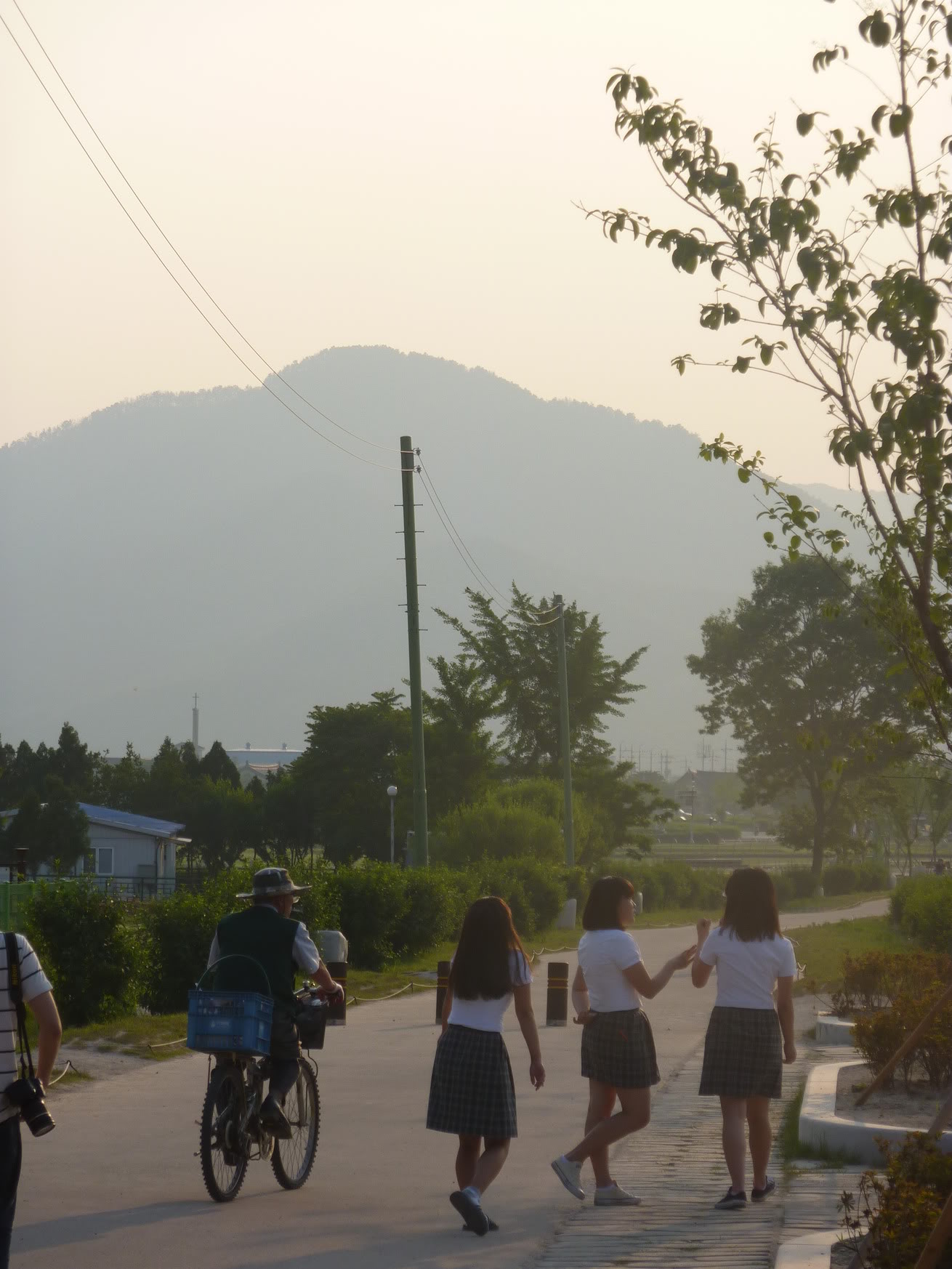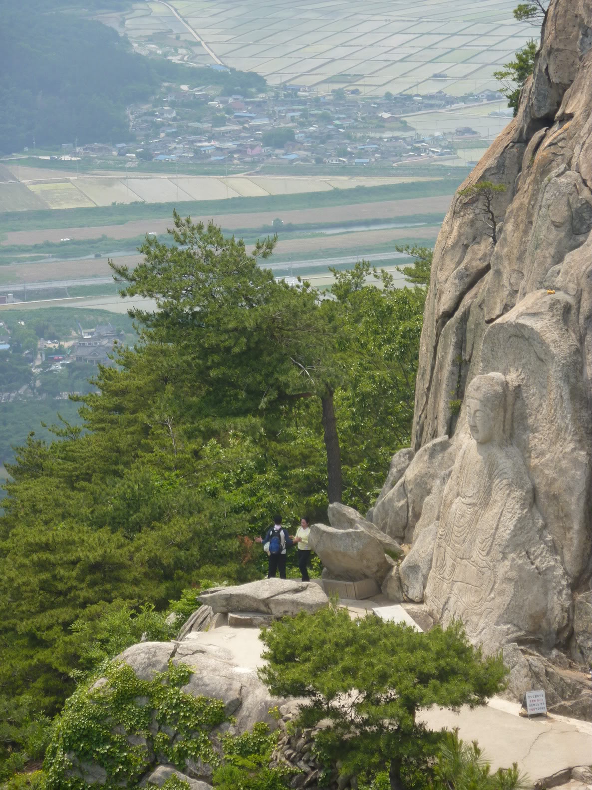 Lindsey came down and joined us as we hiked Namsan, a mountain (well a hill) south of Gyeongju coated in pines and peppered with Buddhist landmarks such as a 7th century carving and a 10-meter high Buddha etched into a rock face. The fresh air was wonderful and I was amazed as over and over again the Korean hikers simply packed out any garbage they made, as no trash cans were available. In China it is, for now, the opposite, with a host of trash cans yet garbage between them all. Hopefully that part will change. At day’s end, tired from a nice long bout of hiking, we wandered around the city center alit with neon and buzzing with activity until we found a fantastic dinner. This became a recurring theme…seems that Korean food is really good.
