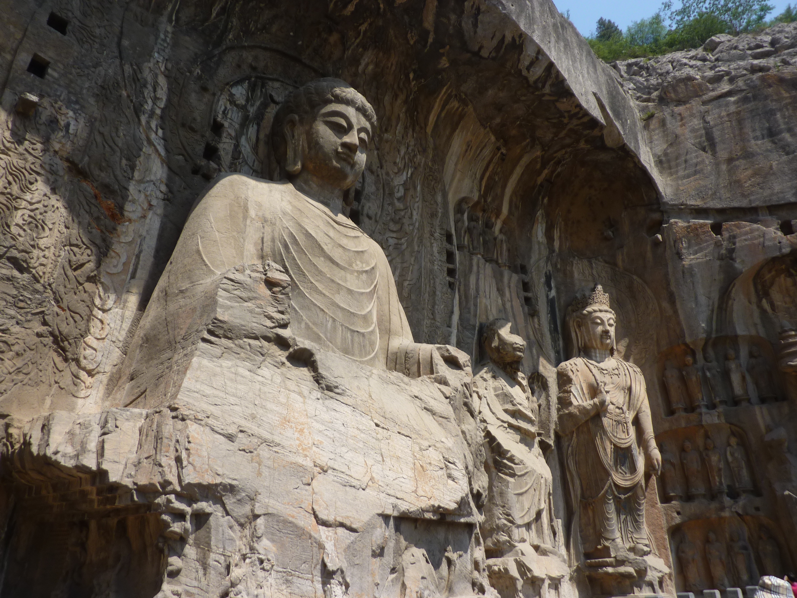 The best known site of the area, at least to tourists, are the Longmen Grottoes, situated some 13 kilometers south of the city along a tree covered bank of the Yi River.  Here, carved into the imposing cliffs are a myriad of small caves and niches that over the past 1,500 years have been packed to the brim with Buddhist statues, including several fairly large and imposing ones.  In some of the darker recesses and along ceilings, it is possible to discern the traces of the paint that once covered these landmarks.  Like so many other things it China, the grottoes too suffered at the hands of the Communist Party’s Cultural Revolution, when zealous Red Guards chopped faces off of a number of the statues.  Today, the government appears to be trying to make amends by charging overly high ticket prices.  Fortunately the area is worth it.