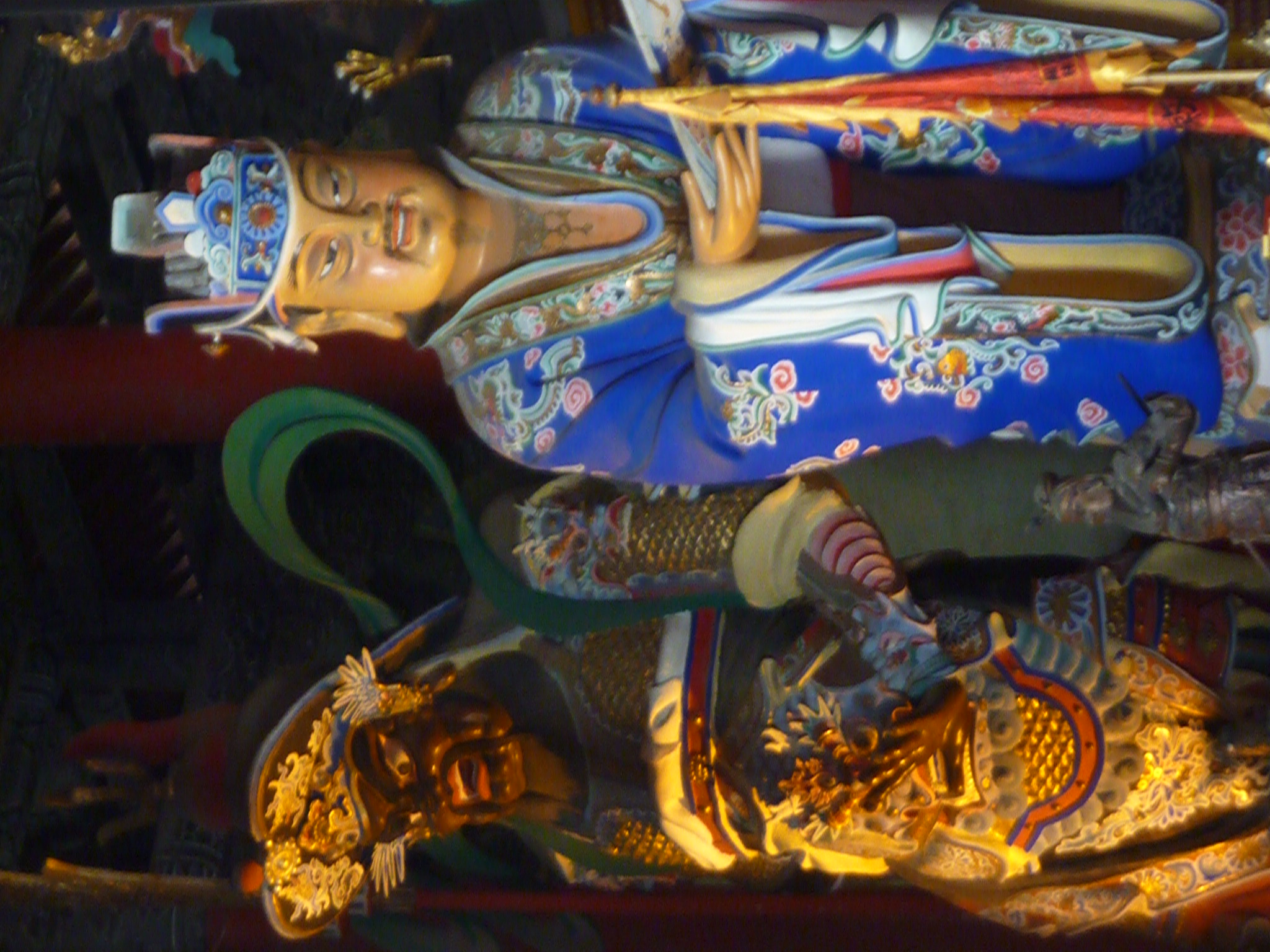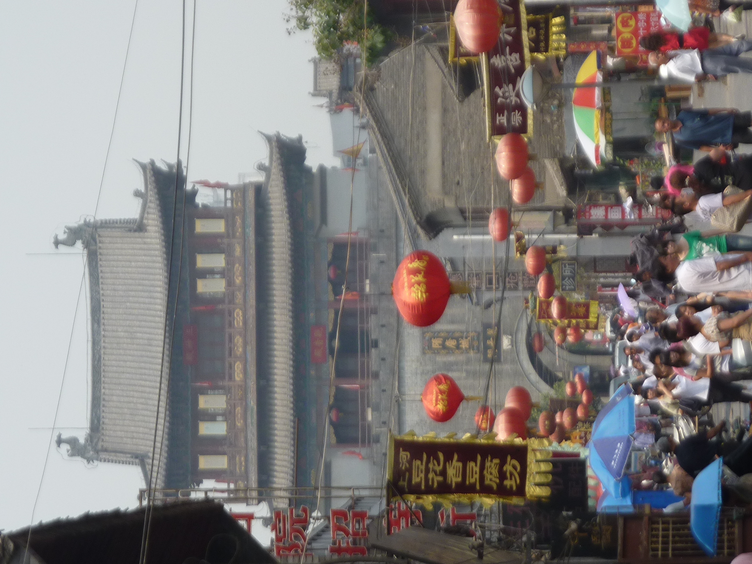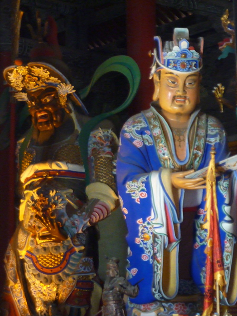 On the route back the city bus let  us off along the side of the highway, in the midst of what appeared to be a home accessories wholesale district.  In the lazy midday heat people watched us walk by, fans whirring in the dark shops.  After a few inquiries on directions, we found our way to the Guanlin Temple, dedicated to the hero Guan Yu of Three Kingdoms lore.  I feel now that I’m bordering on overwhelming with inane details, a trait of most Chinese historic texts, so I’ll bite my tongue to merely say that the temple was quite lovely and well kept and there was no crowding to speak of, a wonderful, wonderful departure from most tourist sites.  That also marked the last activity of the day, and Eric and I both were a bit letdown by the shaokao or street barbecue. We had been honed on the spicier fare of the south and northerners unfortunately maintain an aversion to such food.  The wonton soup throughout town were fantastic though.
