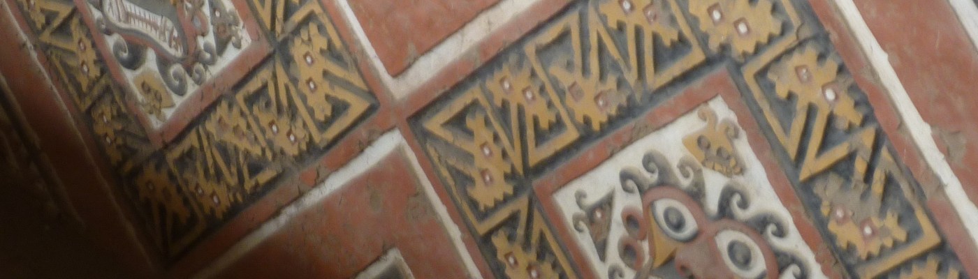 Chan Chan and the Moche Huacas both boast some of the finer detailed work, a lot of it relating to animals, such as the carvings representing the sea at Chan Chan, one of the largest sites before the Spanish ransacked it.  The adobe pyramids of the Moche, outside of Trujillo, must have been impressive in their heydey.  Today, there are some of the colorful paintings that have been rediscovered and preserved, a lof it depicting some of the elements of religion.  The more gruesome aspects featured include the selection of sacrifices: warriors pitted against one another, the winners gaining reprieve and the losers being offered up.  The decapitated head are later shown in the hands of priests or deities.  An interesting bit of detail and a bit fun to imagine a city of up to 20,000 spread on the sands below the two pyramids.  The Spanish, ever the delicate explorers, washed away 1/3 of one of the pyramids by diverting the river in their mindless quest for gold.  Bravo!