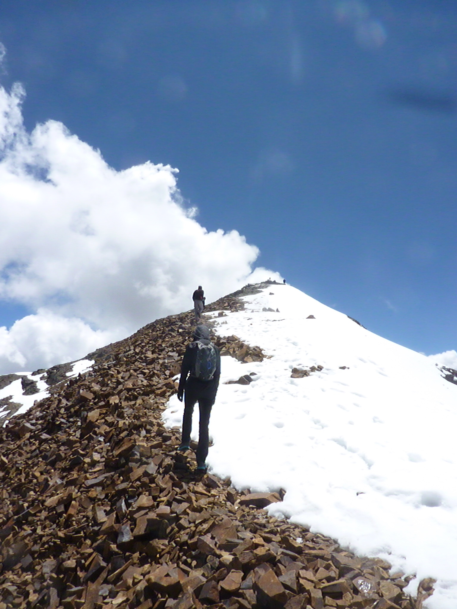 I went slowly up the slope, feeling the loose rocks crack beneath each step, counting them off in my head until I reached 60 then stopping. Standing still was always accompanied by a brief sensation of light-headedness, then the pounding of my heart beat through my own head. The peak didn´t look far, but at over 17,000 feet (or 5300m), there was a cost to every exertion. The worst part is that while it was difficult, I only had to climb about 500 feet. The van had brought the group up the rest of the way.