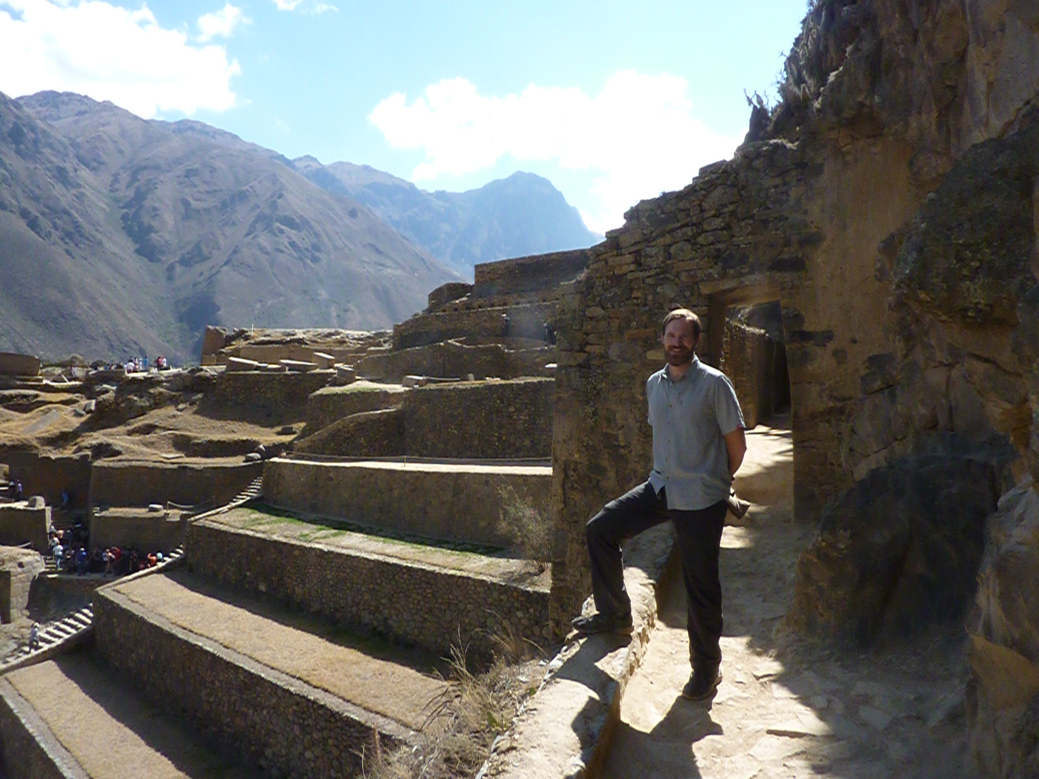 Another particular thrill are the ruins at the site, shaped in an abstract of a llama with a temple dedicated to the Sun at the head of said creature. The views up on the site are stunning, looking down over Ollantaytambo and the surrounding heartland of the former empire, corn only starting to break through the soil in the October spring of Peru. Farther down the “spine” of the llama one can see storehouses for grains and seeds, located cleverly in the approximate locales of the male and female bits (yes, scientific term) of a llama. Even better, to me, is the control of the water coming down the hillside through the ruin, matching with the urinary tract of the llama. Clever design work, yes, but the llama is based on the Incan llama constellation, charged with bringing water to points across Tahuantinsuyu. The latter part of the afternoon consisted of climbing an opposite hill, looking at storehouses and some other structures on that side. Tonight calls for sleep though; an early wake-up call for our train ride to Machu Picchu beckons.
