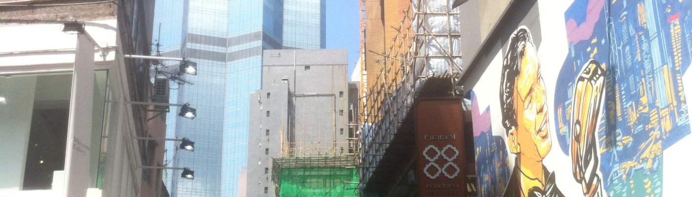 We wandered the streets of Central, using the escalators to head into the mid-levels to seek out the rare bird of an HK microbrewery. The high costs of land, water, and sheer density make it hard to find such spaces, but we were able to at least enjoy a beer that was neither Tiger nor Tsingtao. Parting ways, Hannah went to view some of the galleries around Central, while took what felt like a long walk in the summertime heat to the City Gallery, an exhibition space dedicated, ostensibly, to city planning for the territory but generally more focused on the mega-infrastructure than the human scale. A nascent environmentalism is present in the more recent displays, but the few fellow tourists and locals passing through tell me that Gallery is not on the cutting edge regardless. I rejoined Hannah at the Gagosian, a global art gallery with a large Hong Kong outpost to take in the latest displays in their 7th floor space. The Gagosian, perhaps appropriately, is housed in the Peddler Building, another heavy stone structure that has managed to survive the heated real estate market of Central.