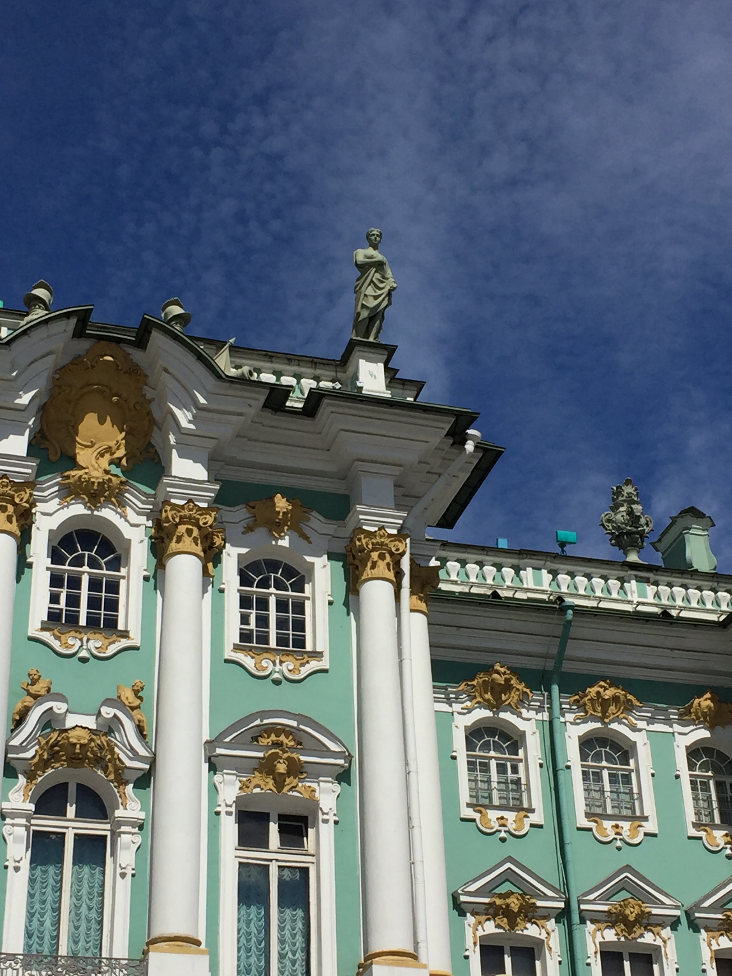 The Hermitage really is the centerpiece of the city, its white and green, heavily decorated facade a clear icon. The bustle inside matched the to-do outside, with mobs of crowds meandering from room to room, evoking a rush hour metro station with the slow, mindless shuffle from masterpiece to masterpiece, the snap of a phone camera (still managing to sound dull somehow) before moving on to snap another picture that will never be looked at. In such a setting, one simply has to either embrace the slow-motion chaos or get angry; I mostly chose the former. The better day was visiting the Hermitage Annex across the square, with a peerless collection of 19th and 20th century works more in line with my own tastes in a far more sedate environment. After, for lunch, we took a chance on a Georgian restaurant with pictures and English on the menu. This is usually a death knell for a good meal, but it turned out that we were lucky this time, perhaps cosmic compensation for the lackluster Georgian lunch we had in Moscow. We washed it down with a visit to the vodka museum, which basically functions as a preamble to a bar, but an effective enough one to be pleasant. I don’t know if I learned much though.
