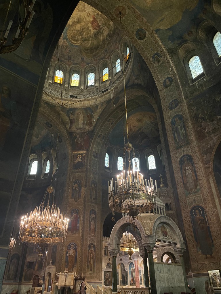 I did my best to take in the tourist sights of Sofia, though the list is not enormous and there is a reason you probably haven’t heard of any of them. The highlights were the old religious buildings, a cliche, yes, but true all the same, and the headliner among these was the Alexsandr Nevsky Cathedral, with its classic gold domes glinting in the summer sun. Inside, it is dark and cool, smelling of stone and echoing with the occasional footfall of the intrepid tourist snapping photos of the frescoes adorning every surface. Another favourite was the National Gallery, the main art museum of the country. It was another lesson reminding me how little I know about Bulgaria, with particular highlights being the colourful and powerful paintings of ‘the master’ Vladimir Dimitrov. Some others that caught my eye were stylized portraits of Kiril Tzonev and scenes of everyday life by Vladimir Rilski.