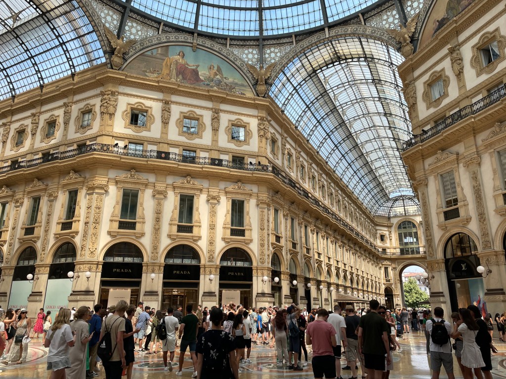 More or less caught up, we opted to walk the half hour or so to the Duomo, the magnificent centerpiece of historic Catholic life of Milan. Mornings generally were a good time to walk, the closest we were to get to cool weather, before the heatwave gripping the region ratchets up during the day and makes a walk down the street an endurance test. Milan is unsurprisingly littered with small caffes offering up brioches and espresso, and taking advantage of this en route to our first destination became the daily ritual. The Duomo itself is enormous, a cavernous and ornate structure littered with intricate stonework and stained glass. It is a truly impressive building to explore, especially on the rooftop where the visitor has far too much space to roam while absorbing city views. It was a bit ironic amidst all the opulence (and after paying an entry fee) to see small spaces to offer donations to the poor within the church. Clearly there is money to be had, it may be more a matter of where it is spent.