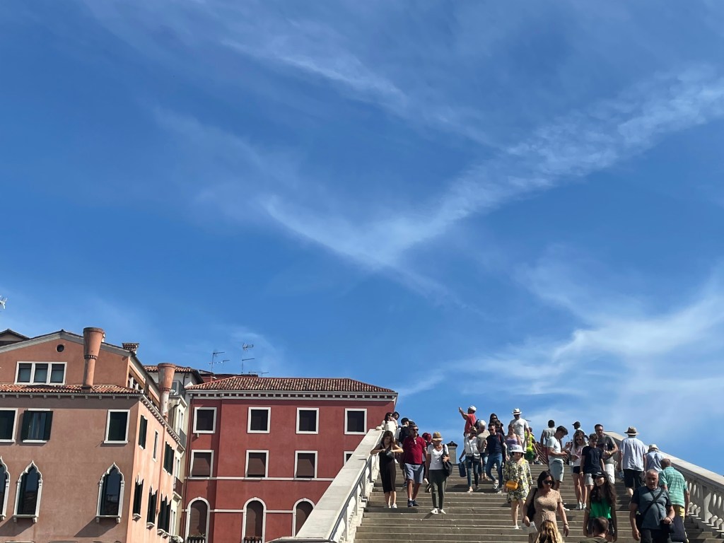 This was my first visit to Venice. While I’d been in the area on past trips, the reputation of the city held me back for years. Too touristy, not a working city anymore but just a commodified product, the great tourist destination of the Romantic era’s Grand Tour, a city so self-referential as to earn the marketing gold star of a themed Vegas casino, even famously sinking under its own weight. The stereotypes exist for a reason – they’re true. Venice is a place you’ve seen before, in movies, on TV, or a postcard. The vaporetto, the water-based bus serving as public transport, was an hour-long wait crowded with other bag-toting tourists. San Marco and the Doge’s Palace frame the piazza, full of souvenir vendors and people actually trying to get pigeons with oddly-numbered toes to land on them. The Rialto Bridge and market, a package deal owing to their proximity, are crowded with selfie seekers. The narrow streets and lanes are clogged with people looking for…well, looking. The intensity of the sightseeing industry is amplified by the smallness of the city, which can be crossed in the span of a few hours on foot. Gondoliers push overpriced rides, though in the late July tourism peak, they don’t need to try too hard.