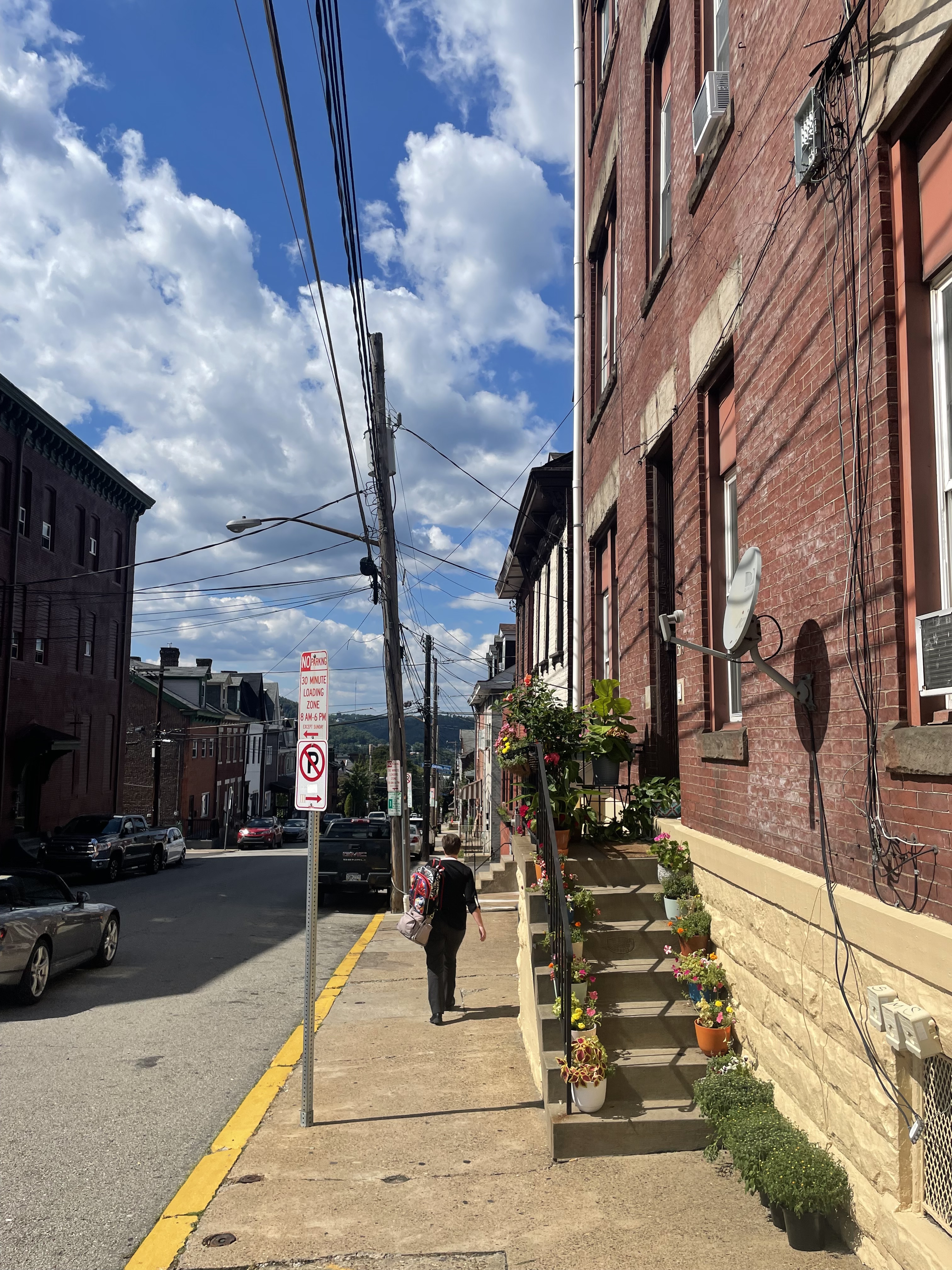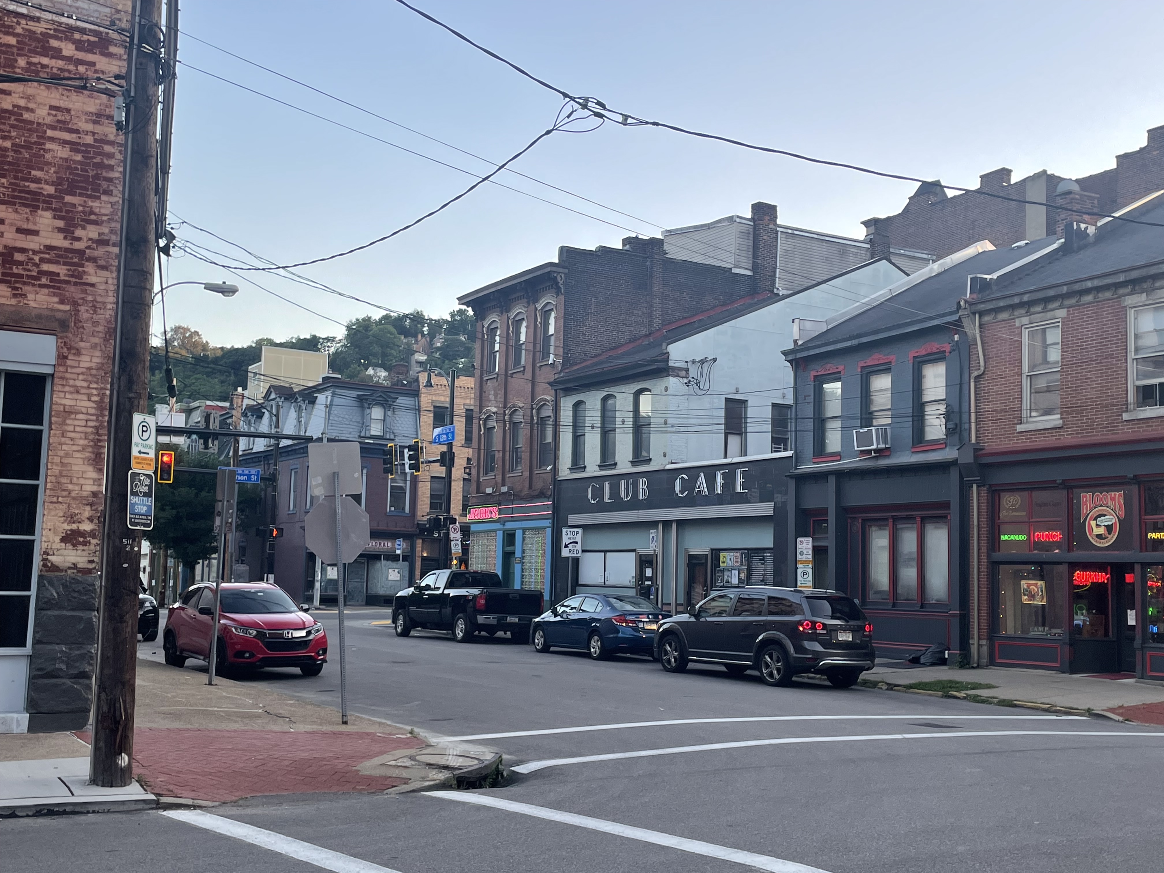 I had arranged lodging for myself at the edge of the South Side Flats, which is, unsurprisingly, a flat area south of the Monongahela River from downtown which stretches out along Carson Street, the main commercial drag. The inn is, like so much here, a building repurposed from a past life as a wrought iron pipe factory, though you wouldn’t guess that from its comfortable, old school common room and relaxed vibe. Buddy’s flight into town was delayed, so instead of making progress to Pittsburgh, he was punted the wrong direction to LAX, with an added flight and substantial delay. Now he was due in on the next morning, hours after our ride was to have begun. We pivoted, figuring that, barring any other complications, we could still keep the planned bike ride on track. But we would have to see how it played out.