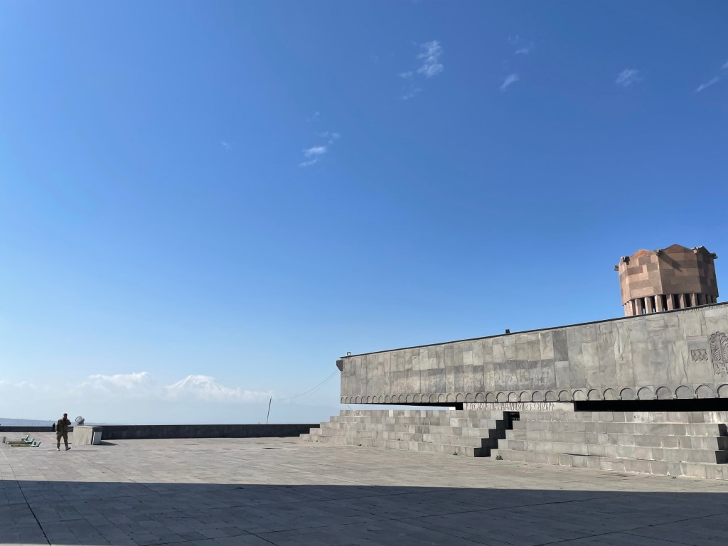Each terrace takes you higher above the city, and evidently there are meant to be fountains which sadly are off for the time being. Nevertheless, the Cascade makes for a breathtaking centerpiece of Yerevan, blurring the line between building and public art; a climbable sculpture. Beyond the highest tier is a patch of land full of rusting rebar and broken concrete footings, the halted next and final phase of the Cascade. Farther beyond that, you can climb to a 1960s Soviet monument, all grey stone and windswept open space, celebrating the 50th anniversary of the October Revolution. The path between the two monuments is somewhat convoluted, with a clear missing piece, and I made my way back down the Cascade to a terraced café for tea and brunch while I contemplated the overt symbolism of the remaining unfinished this gap between Soviet and modern Armenia.