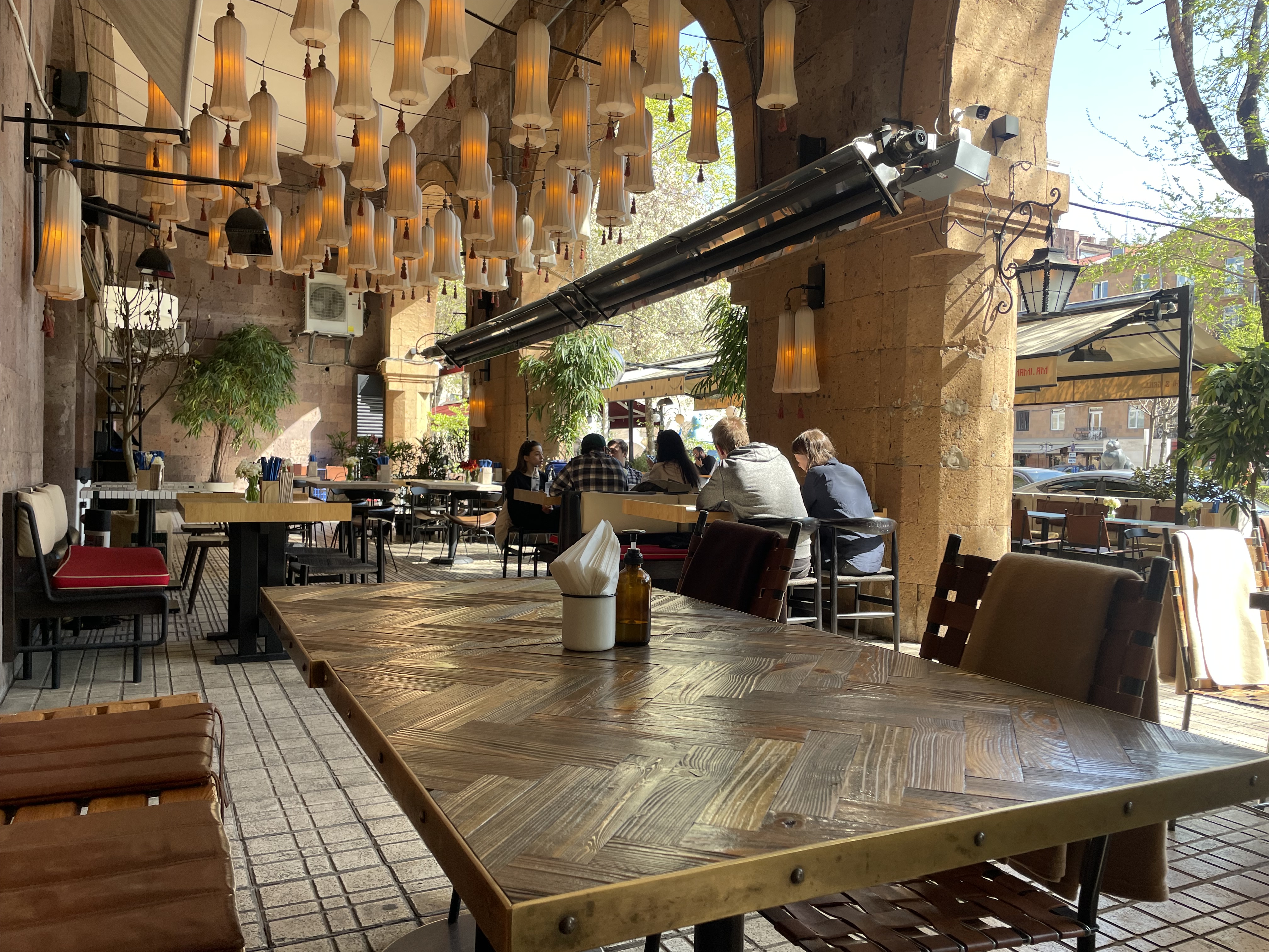 Instead I was left with the dreariness of my own company. To compensate, I went shopping. Specifically I went to the Yerevan Bazaar, which while still ornate and impressive on the outside, seems to be in the midst of a more mundane modern transformation on the inside. Imagine an Armenian Costco and you about have the idea. Opposite the bazaar is the city’s only mosque, appropriately known as the Blue Mosque for the colour of its dome and featuring a small, pleasant garden. Yerevan for me was ultimately a walking city, one where every street held promise and hummed with life late into the night at taverns, restaurants, and cafes. I did my best to lean into this, poking into antique stores and stumbling into an artist collective’s small café in a transformed courtyard around the corner from my hotel where I settled in with a book and a pot of tea.