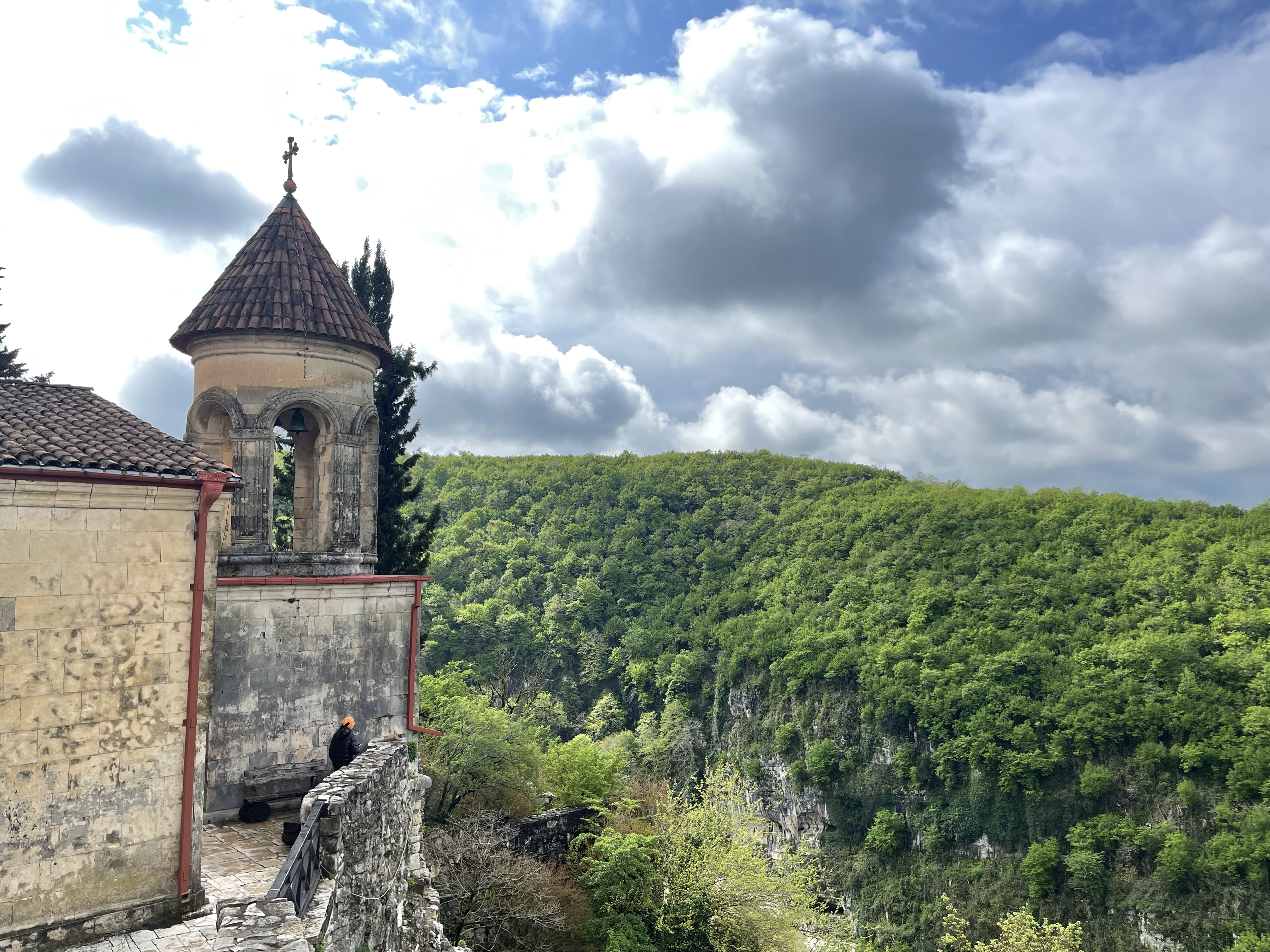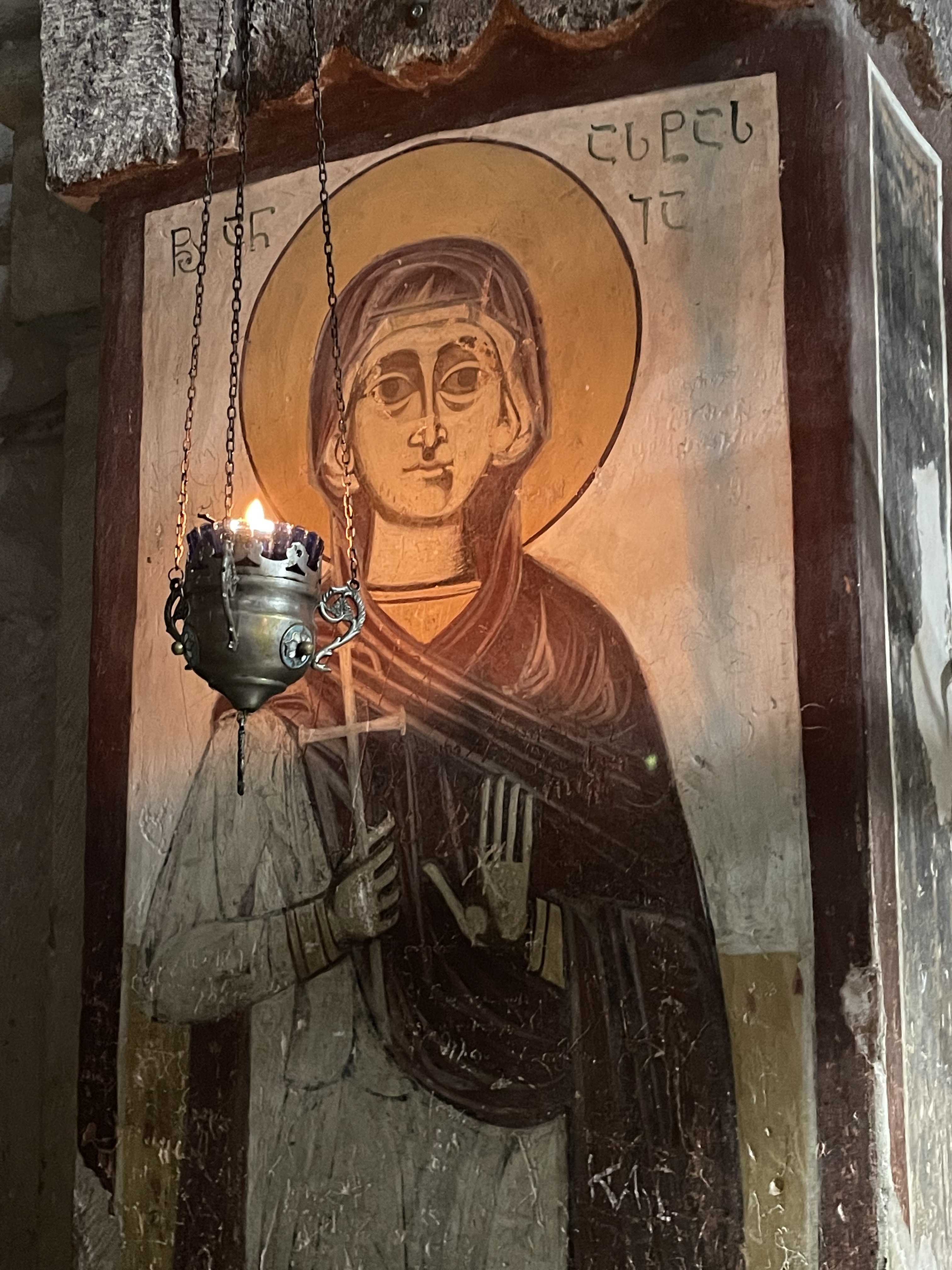 Motsameta is pretty, dark aged stone (again) atop an outcropping and (again) at a dramatic bend in a river. It is all done to lovely effect, and inside the main church building the monks, dark robed with flowing beards, chanted and shook incense in their censers. The scent mixed with the candles, always the churches have lit candles, filling the space with smoke. Frescoes adorned every surface, and I was grateful here to have a local guide. It is always awkward to walk into these sacred spaces – even when they don’t mean anything to me personally, I do want to be respectful. My guide takes this a step further, and as we walk back up to the parking lot, he shakes his head at the many cars that drove down the path to the church. This is apparently a local faux pas, and he tsks to me about the ‘fake religious’ sorts who do this, going so far as to take some time on our way out to close up the gate at the parking lot against further transgressors. How the cars already past the gate will get out, I am not sure.