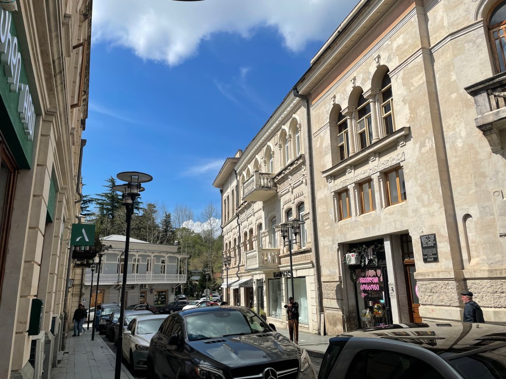 The last morning was another breakfast spread, another boiled egg and more wedges of khachapuri and lobiani, a better-than-it-sounds kidney bean pastry. Pink plastic-wrapped hot dogs, boiled, are a breakfast staple but I never tried this particular delicacy. At the table with me was Alexander, aka Sasha, from Saint Petersburg, another young émigré from Russia working in tech, a recurring theme across the region. We were both airport-bound this morning, headed to Hungary, and our host continued his gesticulating on the drive out to the airport, pointing out defunct furniture factories and the new Georgian Parliament building, a pristine bubble of steel and glass set in a field. Since it opened, the Parliament has again taken its business to Tbilisi, leaving the future of the building up in the air. Did I want to stop and take a picture, came the question. No, thank you. Same for the factory, same for the liquor store, same for the old German building. It was time to bid the Caucasus goodbye.