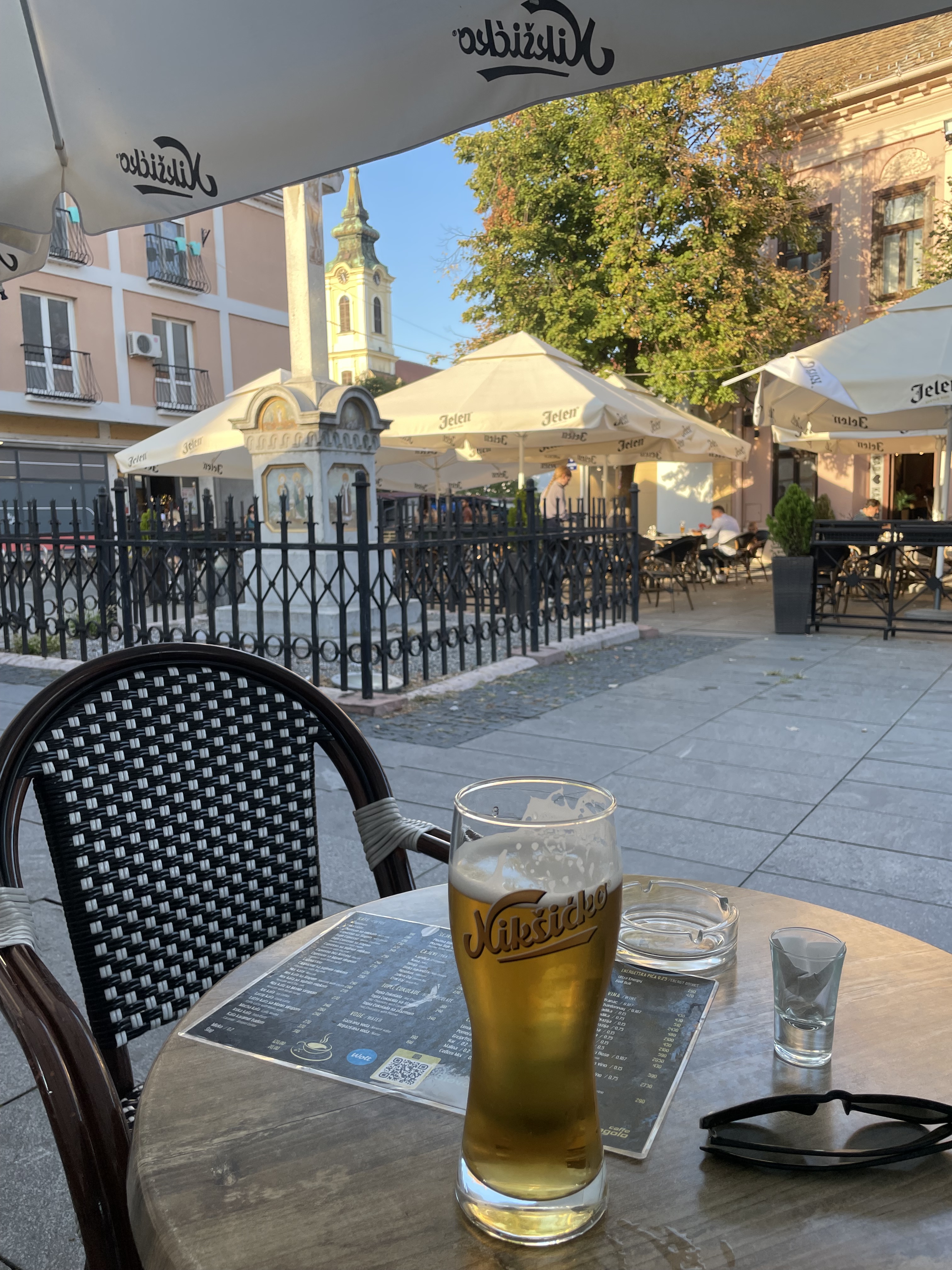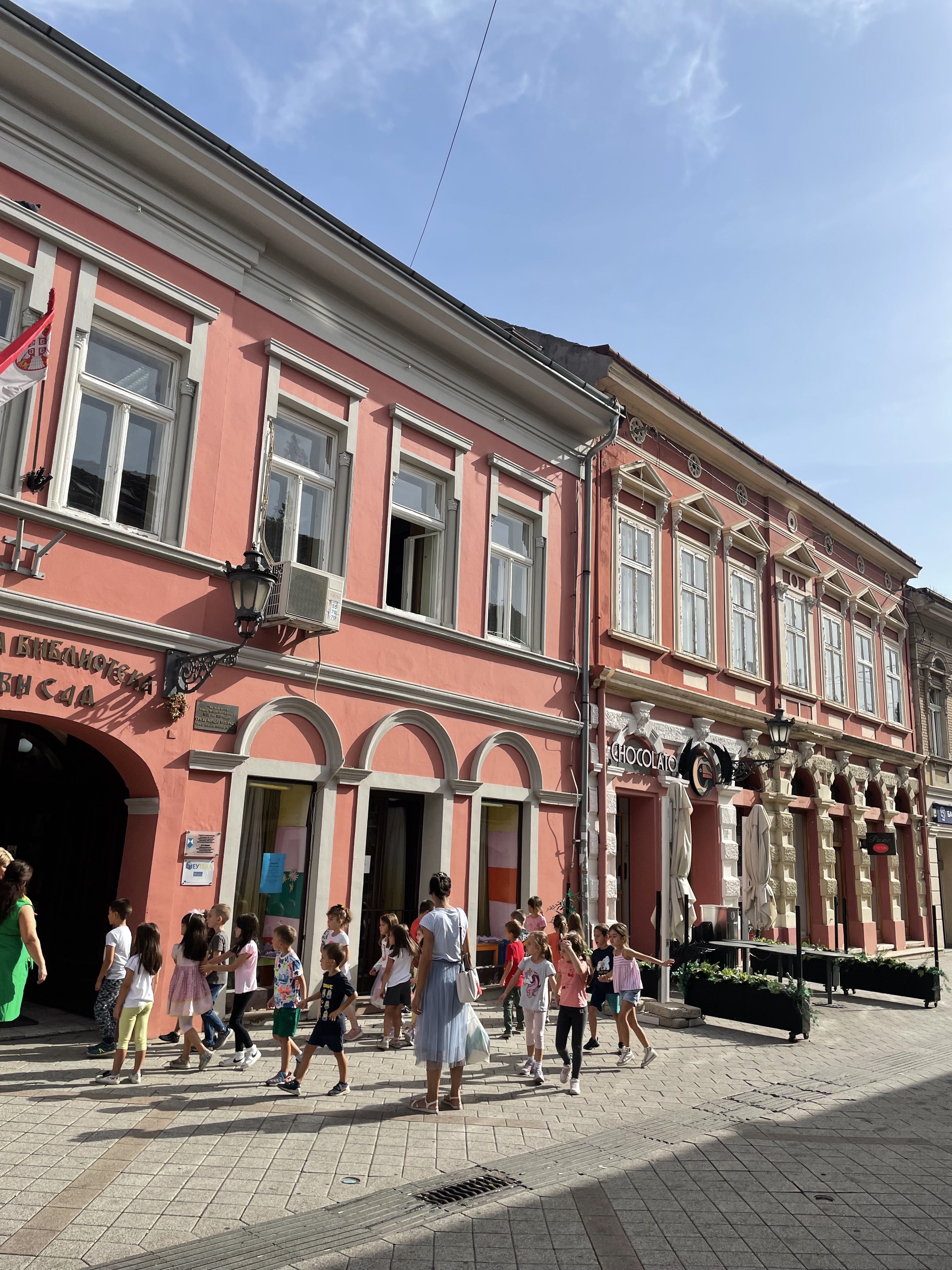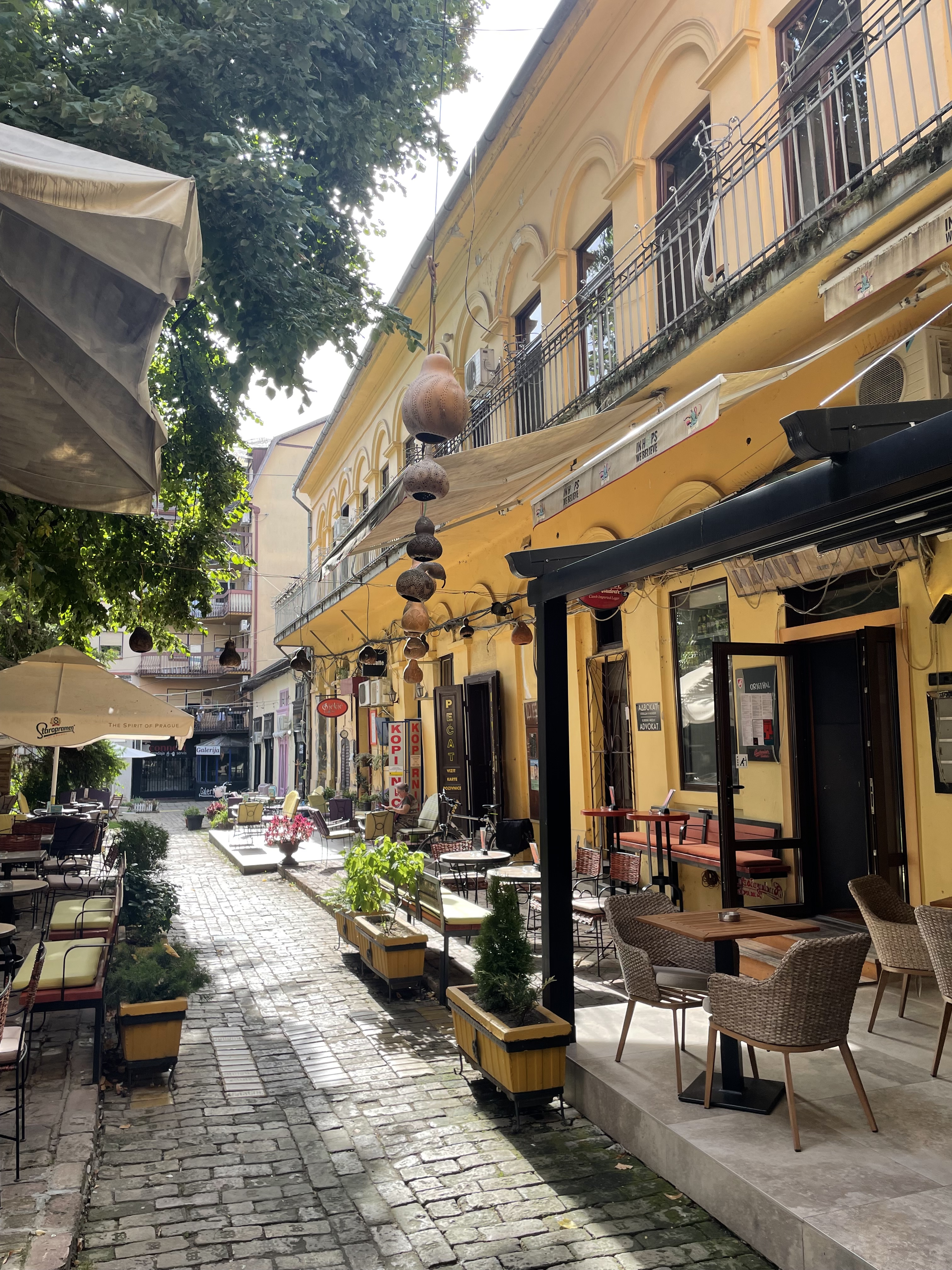 Sightseeing aside, the pleasure of Novi Sad is its old town street life, a compact set of streets, plazas and alleys cut through with courtyards and passages. It hums throughout the day, first with early morning deliveries and coffee crowds, line-ups outside small Serbian bakeries, pekaras, where my days truly began. Tables remain full throughout the day and into evening, umbrellas shielding people from the worst of the heat before the blissful, welcome cool air after the sun drops. The only group tourism I saw at any point in Novi Sad was a pack of German pensioners with walking poles in hand, listening attentively to their guide through discreet headsets – no bullhorns or flags to be seen. It is wonderfully relaxing to have the only major decision of the day be when to leave a café table for the top floor balcony where I was staying.
