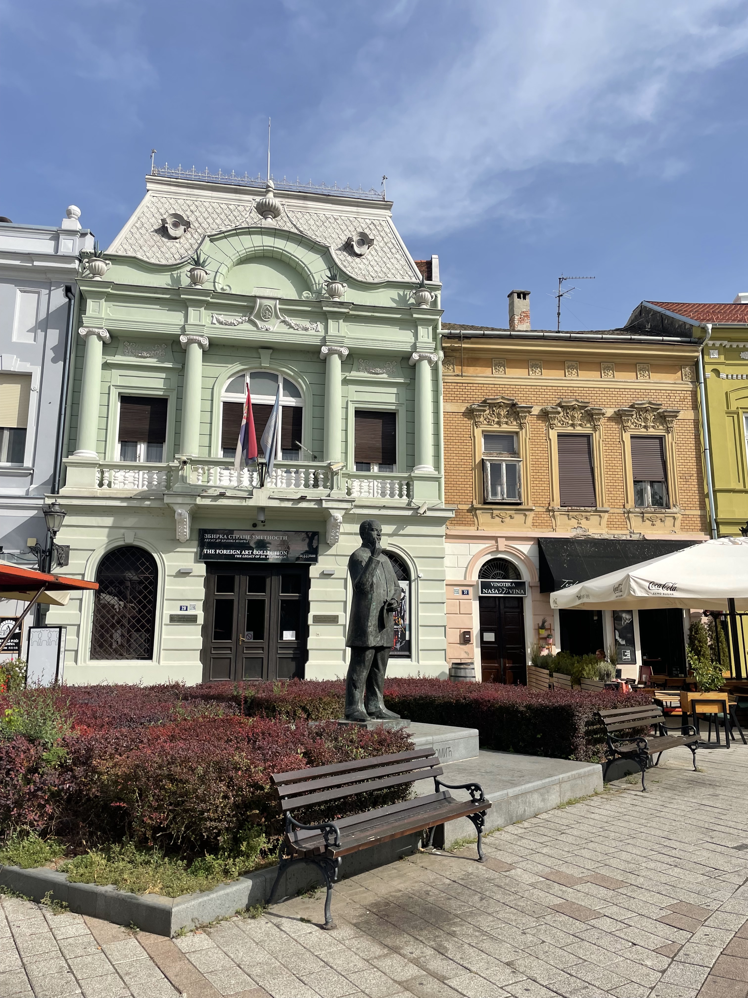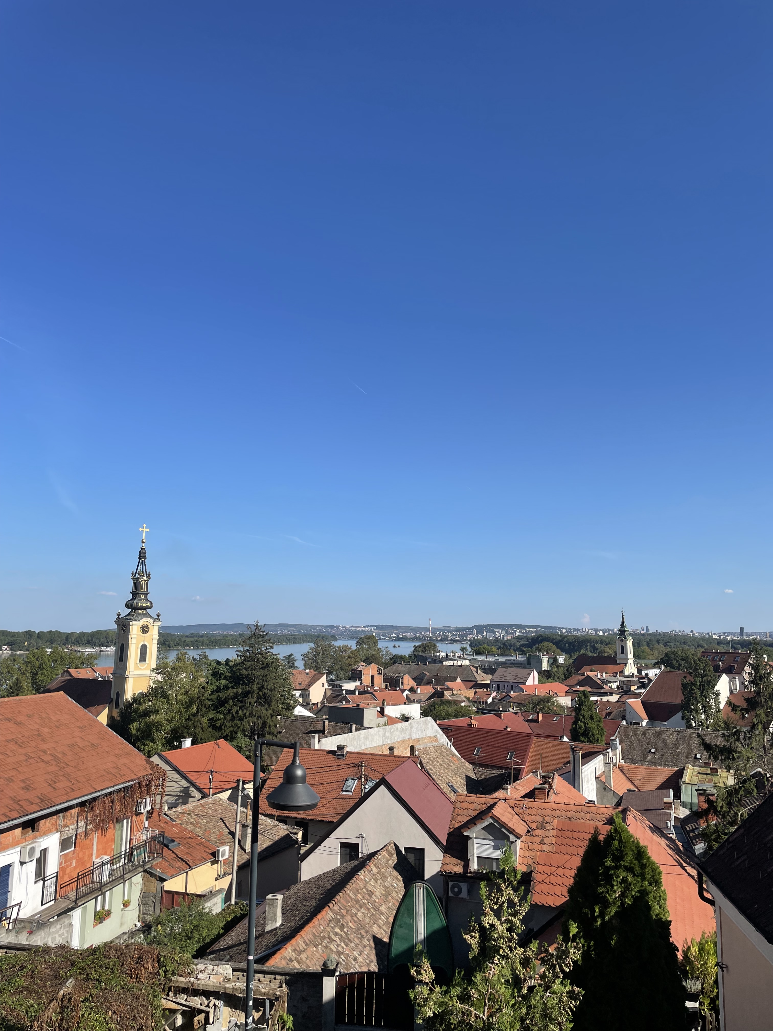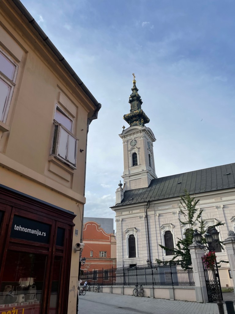 Sightseeing aside, the pleasure of Novi Sad is its old town street life, a compact set of streets, plazas and alleys cut through with courtyards and passages. It hums throughout the day, first with early morning deliveries and coffee crowds, line-ups outside small Serbian bakeries, pekaras, where my days truly began. Tables remain full throughout the day and into evening, umbrellas shielding people from the worst of the heat before the blissful, welcome cool air after the sun drops. The only group tourism I saw at any point in Novi Sad was a pack of German pensioners with walking poles in hand, listening attentively to their guide through discreet headsets – no bullhorns or flags to be seen. It is wonderfully relaxing to have the only major decision of the day be when to leave a café table for the top floor balcony where I was staying.
