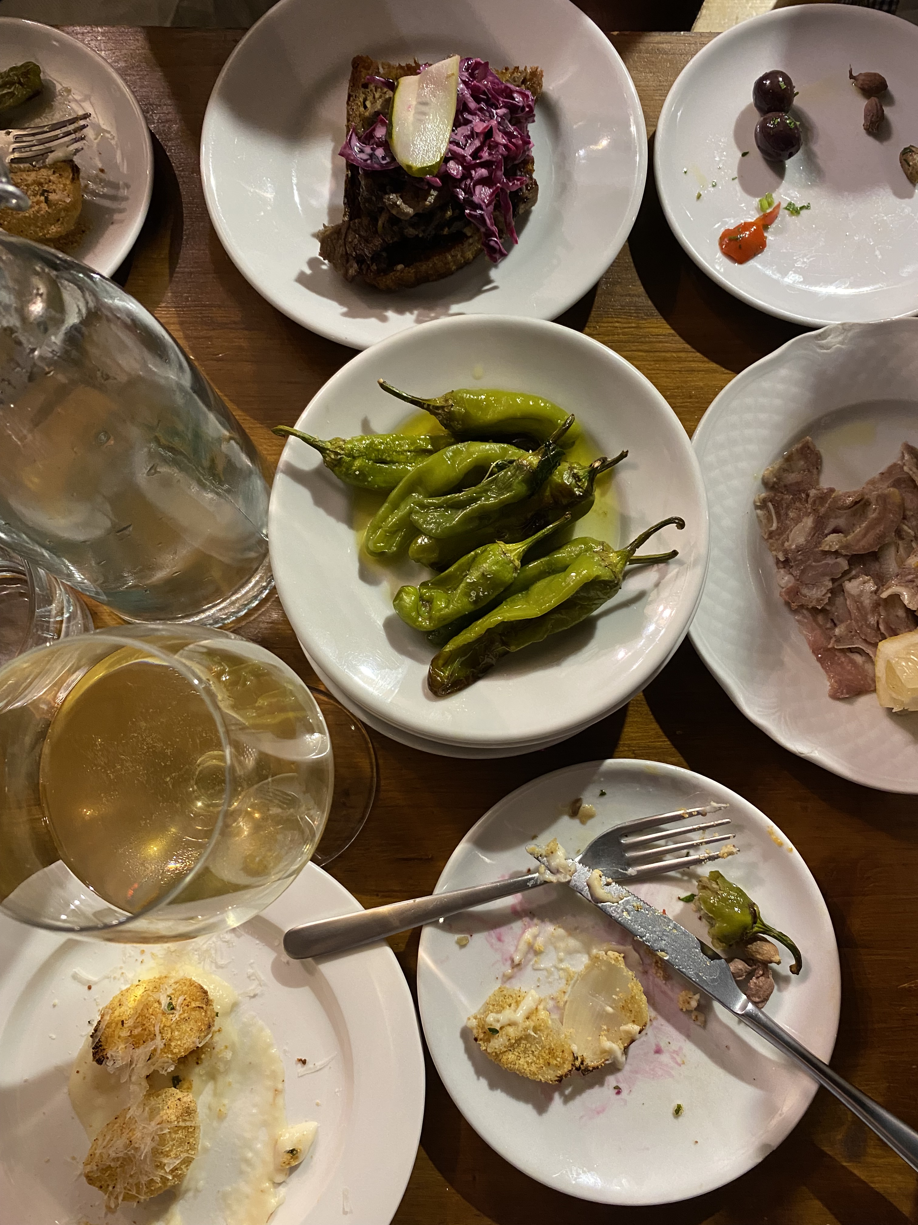 In between people arriving and circulating, staff snuck away empty plates or, to much greater fanfare, appeared with more appetizer plates. Bottles of natural wine marked distances down the length of the table, doubling as social lubricant and introductory device as one person reaches past another to make a pour or asks how it is. I can vouch that the wines, for whatever my palate is worth, were excellent. The evening was also a chance for me to reunite with some high school friends and meet their partners, which was an absolute highlight of the wedding days. The party showed no signs of stopping when we stepped away, exhausted. I could not begin to match the gusto of the groom’s older uncle, a short and robust Sicilian who took to an impromptu operetta dedicated to the bride. When in Rome and all.
