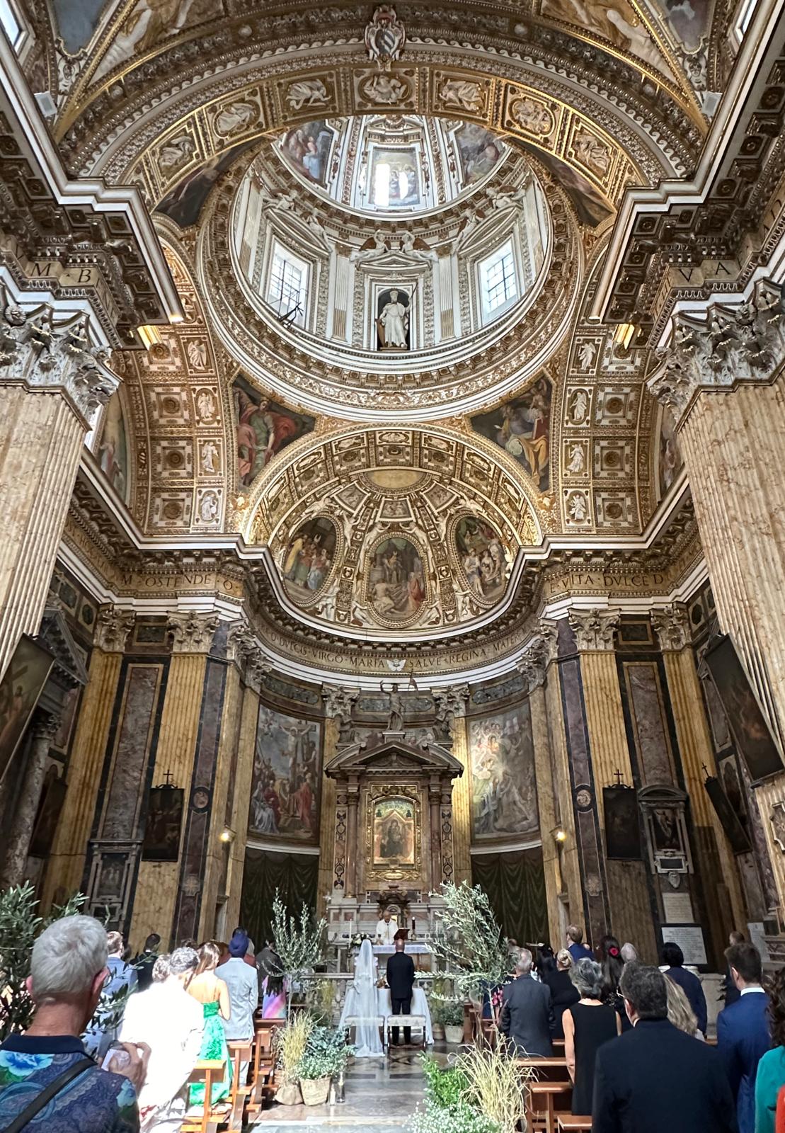 The wedding itself was two days later, giving me time to gracefully nurse a hangover before pulling out a suit and tie, both firsts in my travel fashion history. Appropriately attired, we took seats in the pews at the Chiesa di Santa Maria ai Monti, a few blocks from the Colosseum. The Catholic building is in the Baroque-style and dates back to the 1580s with a fittingly grandiose interior. I had time to look at it in detail as the ceremony itself was conducted, appropriately, in Italian, and did my best to catch onto various words where I could. The mother’s side of my family is Catholic, and I’ve been to enough family events to follow the major beats of a Catholic wedding – when to stand, when to sit, when to kneel, when to greet those around you – though I am still looking around a room for the cues. Tossing rice at the newlyweds as they came out, the wedding itself became a tourist attraction, passerbys stopping for pictures before continuing on their hunt for a midday gelato.