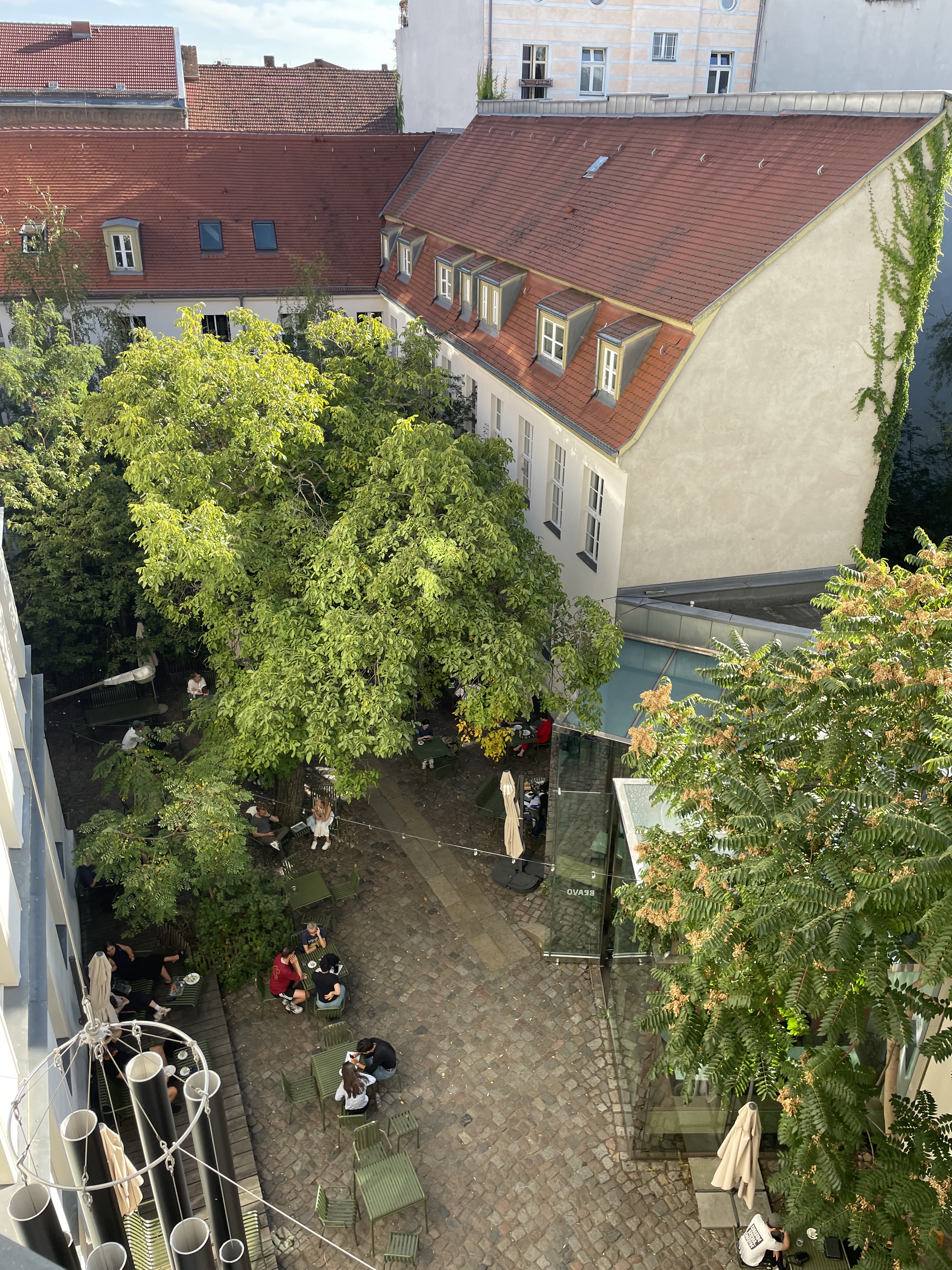 Another day I headed out for a mid-afternoon stroll, straying from Mitte into Prenzlauer Berg. Walks are a space for discovery and I found not one but two antiquarian used book stores on the same block. I left both empty-handed, overwhelmed with choices and paralyzed by indecision. This was a bad call – neither was open the Sunday I went back. My wandering ended at Arkonaplatz, a small, typically European park, all gravel paths, benches, plane trees and geometric lines. The local market was in full swing, assorted stands with snacks, butchers, produce, and, of course, cheesemongers. Young kids swarmed on push bikes, older ones peddled unsteady circles around adults talking on benches. I don’t know that I could draw up a more idyllic picture of city life than this. That night, we circled back to what had become our neighbourhood wine bar, a dim space with a pressed tin ceiling and dark wood tables under jaundiced lights. We sipped wine and the sky turned to ink.