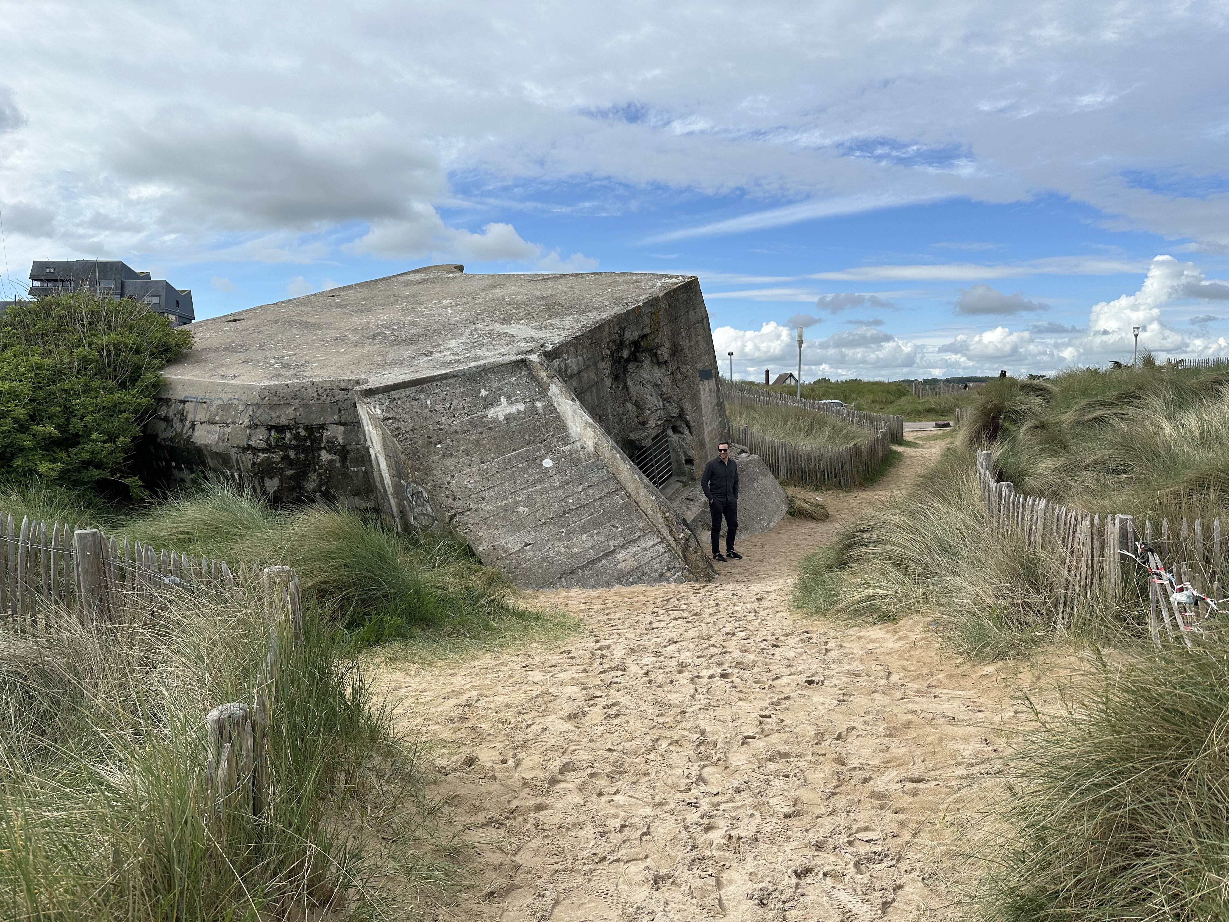 Five different beaches mark the D-Day landing zones, and our first stop was Juno Beach. Canadian soldiers made footfall on the sands of this narrow beach in the early morning of June 6, 1944, trading in the roiling waters of the English Channel for German guns and mines. We stopped in Courseulles-sur-Mer, a small seaside town just past the reinstated sand dunes and in the shadow of a ruined Nazi battery sinking unevenly. The sun was bright this morning and the only people around were a pair of women in beach chairs reading quietly. It is hard to square the peacefulness of that scene with its recent past, but perhaps that is the point.