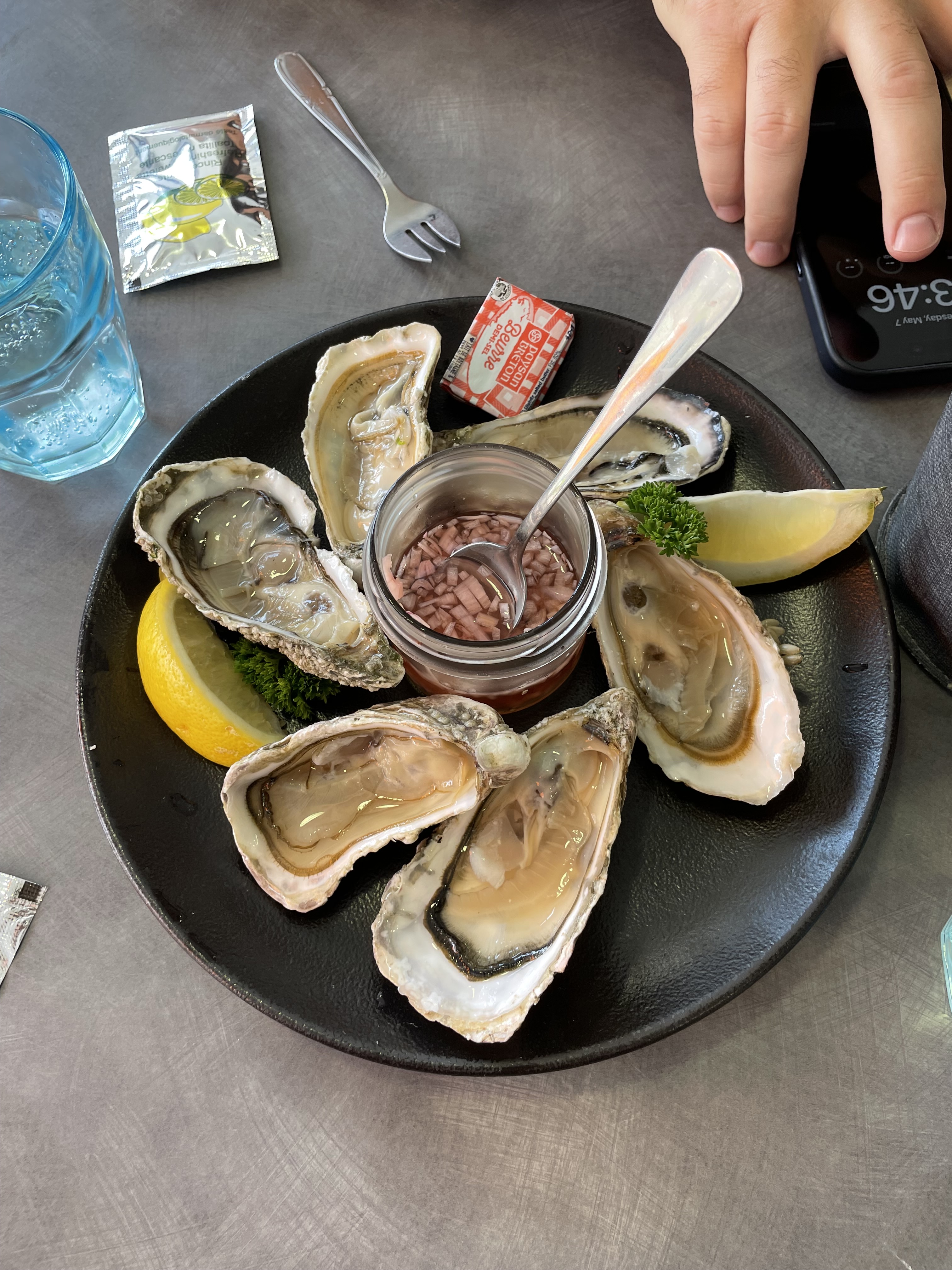 We made our way back on foot to the car park, past the people crowding the streets, past the herds of sheep in pastures, and past the children squealing while ankle deep in the mudflats. Everyone seemed to be enjoying the day. We crowned the visit with lunch, including a half dozen local Norman oysters while we worked on our culinary laurels. Back in Bayeux at day’s end, it felt good to have had a day away from World Wars, trenches and pillboxes. It’s easy enough to get swept up in the drama of the fighting, especially on a canvas as big as D-Day and World War II. It’s also important to balance that out, not just to enjoy the trip but to remember that we can create as well as we can destroy.