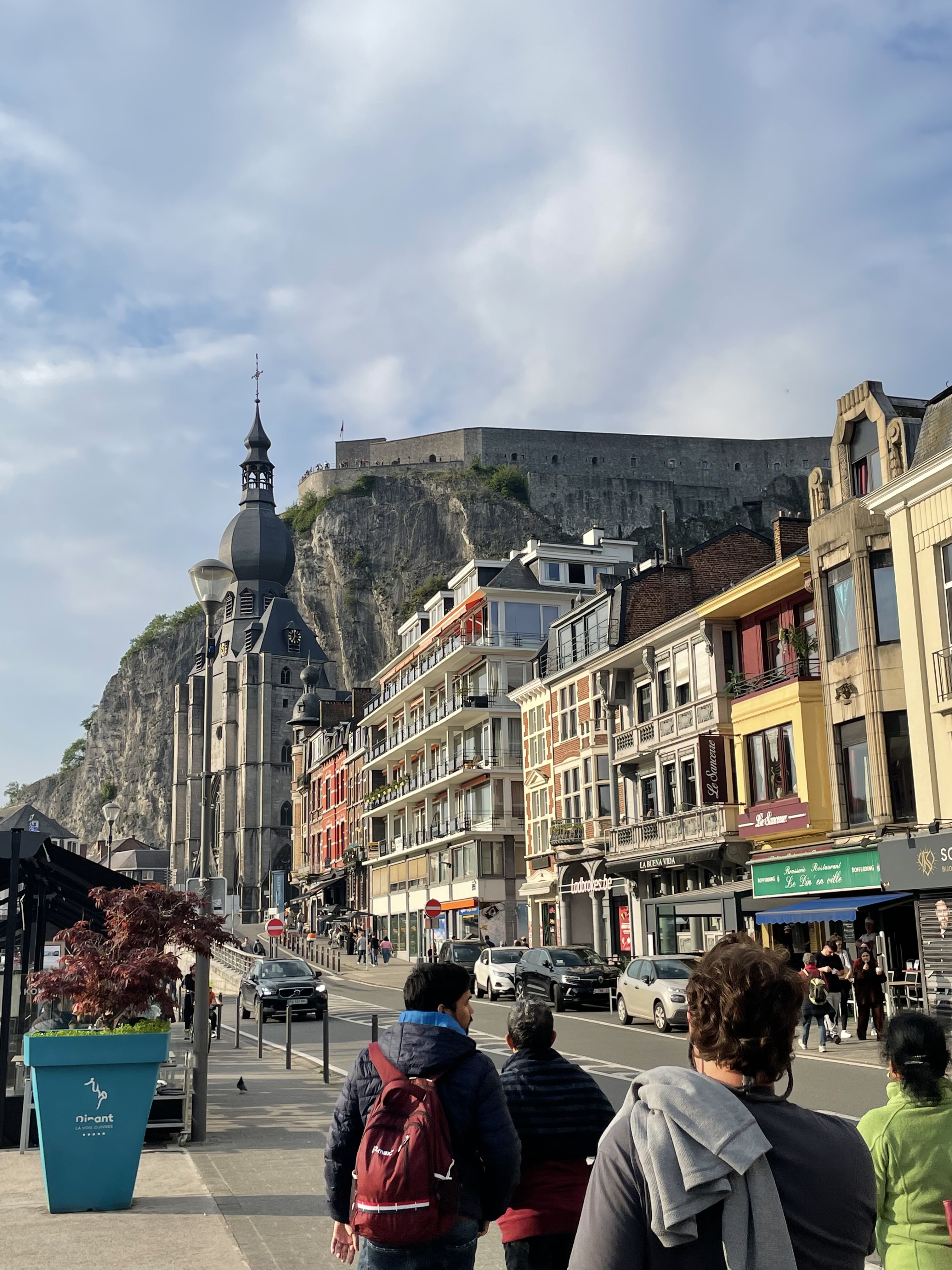 Wallonia is essentially the French-speaking bottom half of Belgium, contrasted with Flanders, the Dutch-speaking north. In contrast to the Flemish, Walloons earn less on average and it shows in the towns that our Skoda wound through in the shallow valleys between rolling hills and forests. We were headed for Dinant, a small town nestled in a steep rocky gorge along the banks of the Meuse, picturesque, charming, and near enough to Brussels-based weekenders and daytrippers. Like many small towns, Dinant has few claims to fame: Alphonse Sax grew up here and left to became an inventor of musical instruments, an ideal career in the more whimsical 19th century. His most notable effort, the saxophone, continues to grace high school music classes and is recurring motif on Dinant’s streets and bridges. More prosaic sites, like a hilltop citadel and a grossly oversized 13th century church with a pear-shaped spire, complete the picture of Dinant. For our part, we satisfied ourselves with walking the riverfront while weighing our options for a meal and a drink.