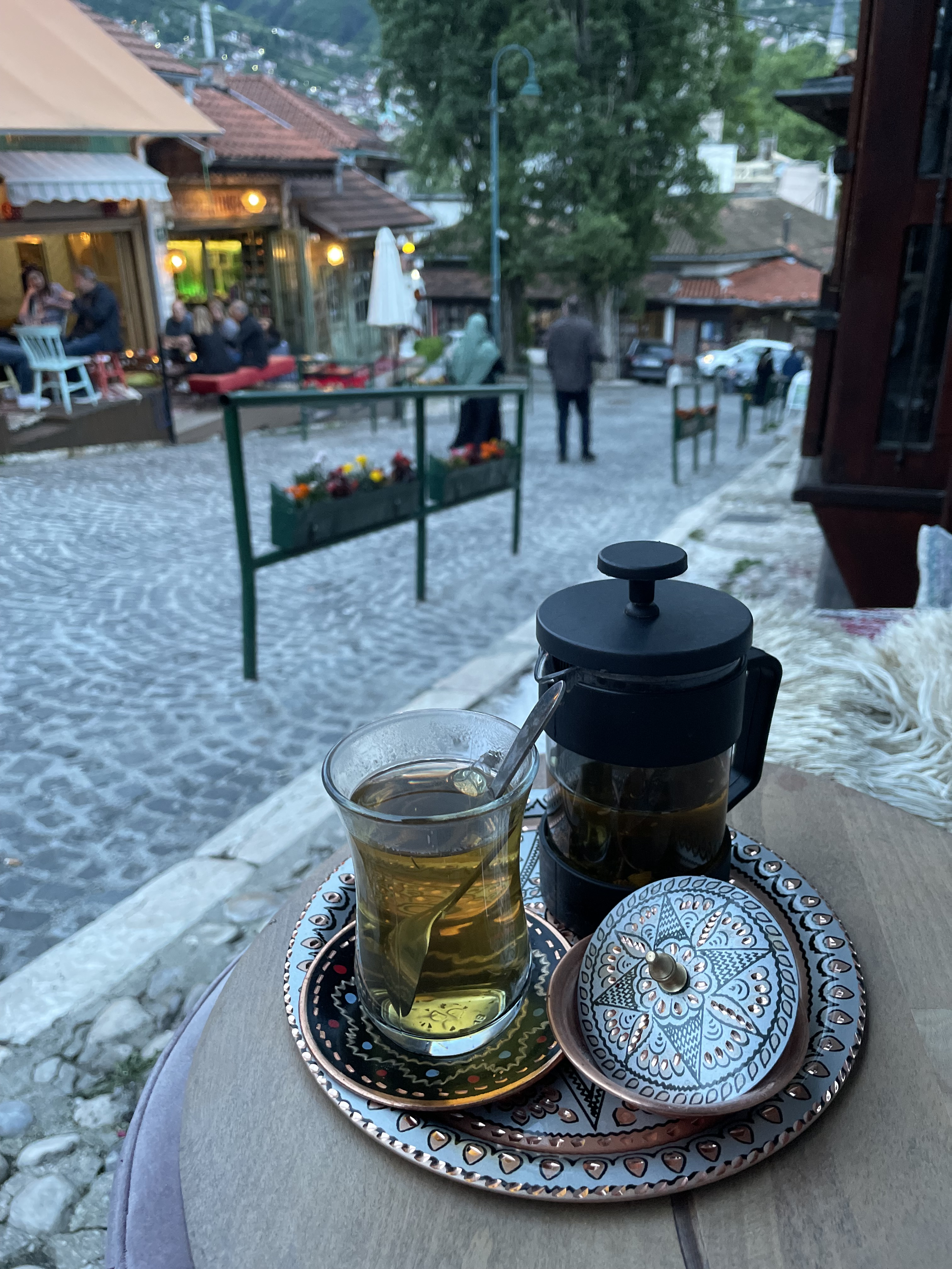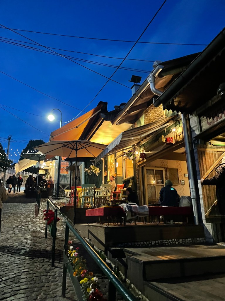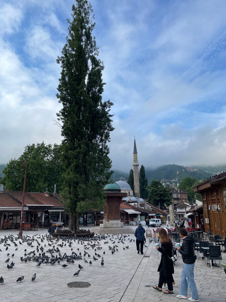 20 minutes and 20 euros later I alighted in Bascarsija, the commercial heart of 16th century Sarajevo and today the undisputed epicentre of its tourist trade. The roots here trace back to the expansionist Ottomans, who within a century after their conquest of Byzantine Constantinople had swept up through the Balkan peninsula until being turned back at the gates of Vienna. Bascarsija, taken from a Persian word for trade centre or square, was and is exactly that. It built out during the 1500s after the appointment of Gazi Husrev-beg, the governor whose vakuf (‘deed of endowment’) conferred the groundwork of Ottoman civilization: a souq, caravanserai, mosque, madrasa, and hammam, among other buildings. Filling in the spaces between were traders and craftsmen, clustering so that each street represented a specialization. This system has eroded today, and instead it is souvenir shops, cafes, and restaurants that are omnipresent through the busy lanes filled with tourists. Whatever the shortcomings of contemporary Bascarsija, it makes for a lovely starting point and haunt for a visitor.