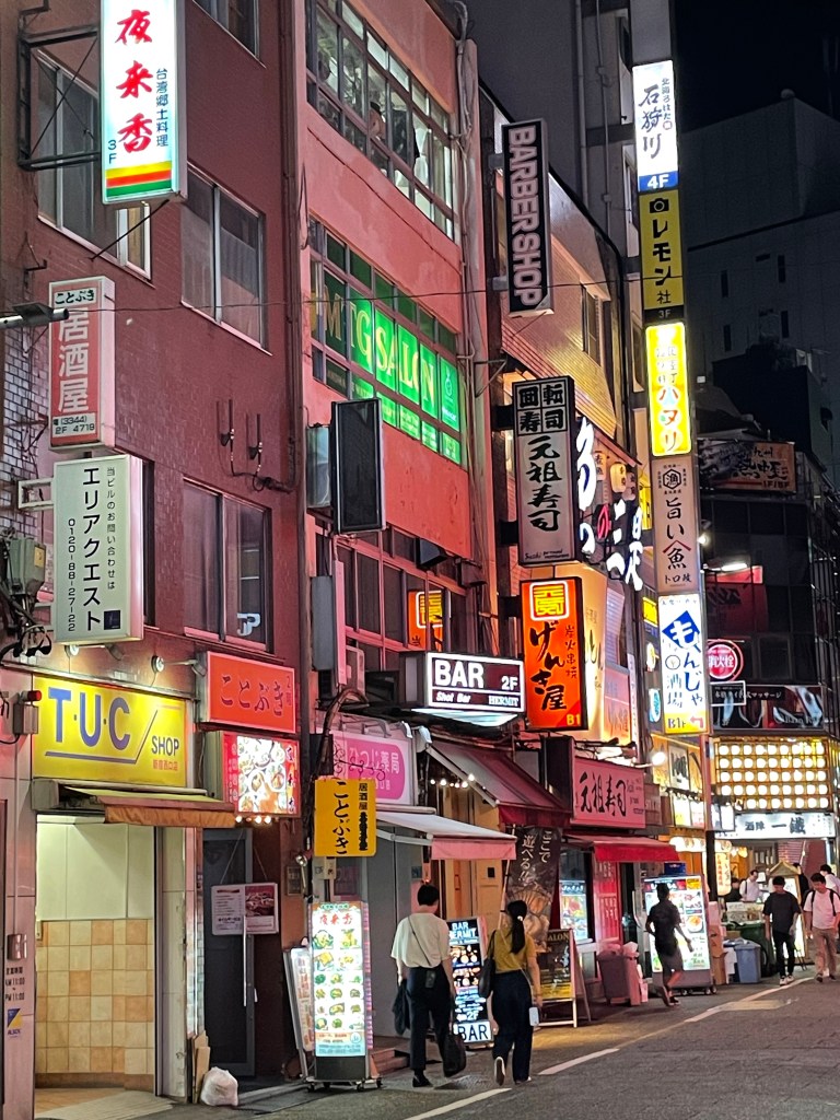 And as in many places, language is a barrier, exacerbated by the mix of hiragana, katakana and kanji symbols, virtually indecipherable for the outsider. English is spoken in hospitality roles that you will always have a roof overhead and found on enough menus that you won’t go hungry, but connecting with people is harder. To my delight, and the delight of many of the Japanese we ran into, Hannah speaks some Japanese, a lingering remnant from her time here as an English teacher. Her abilities won us friends along the way, such as at a fourth floor Shinjuku dart bar where the owner, suitably impressed, bridged the cultural divide by playing Backstreet Boys on the karaoke machine, microphones appearing as if from thin air, for a quick singalong before a round of shots on the house. Like anywhere else, these social moments transcend the cultural voids, lending a warmth to the hard concrete edges of Tokyo.