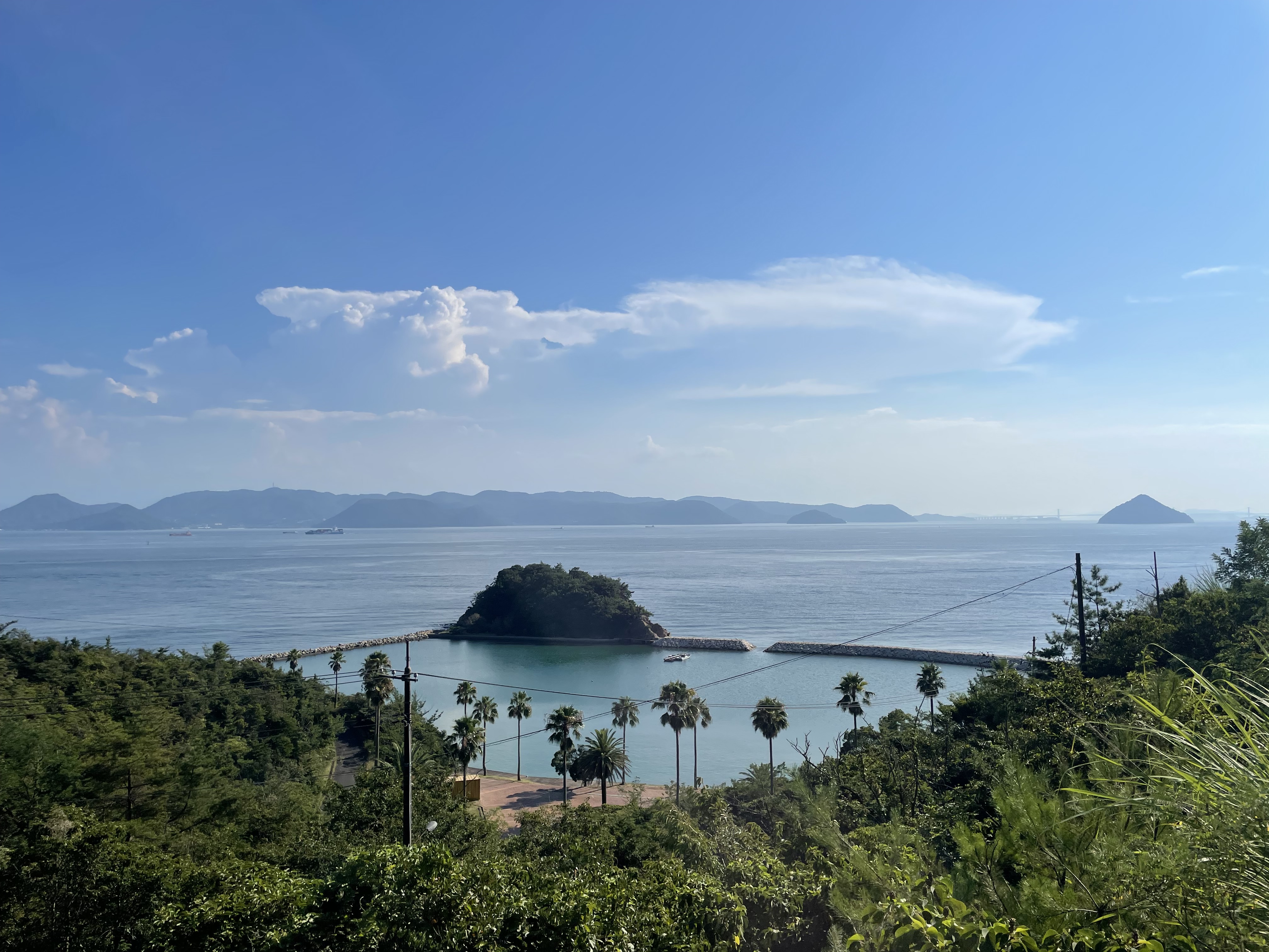 After more than a week of Japanese cities, we allowed ourselves a change of pace. From Kyoto, a few trains, a dockside lunch, and a brief rush through the heat found us on a small ferry bound for Naoshima. The small island loomed up ahead, bare brown rock rising from the inland sea, the distance speckled with smaller islands and framed by Shikoku in the background. The island’s heavy industrial history is alive and well – the first sight is a pile of black coal the size of a building, methodically being fed into an awaiting cargo ship. Shortly after we turned a corner and the heavy machinery was supplanted by the small town of Miyanoura, one of three settlements on Naoshima. Soon we were off the boat and in a minivan, a short trip to our tatami-floored guesthouse. The sea, 50 metres from our doorstep, lapped at the sand on a crescent beach, an invitation in the August heat and humidity.