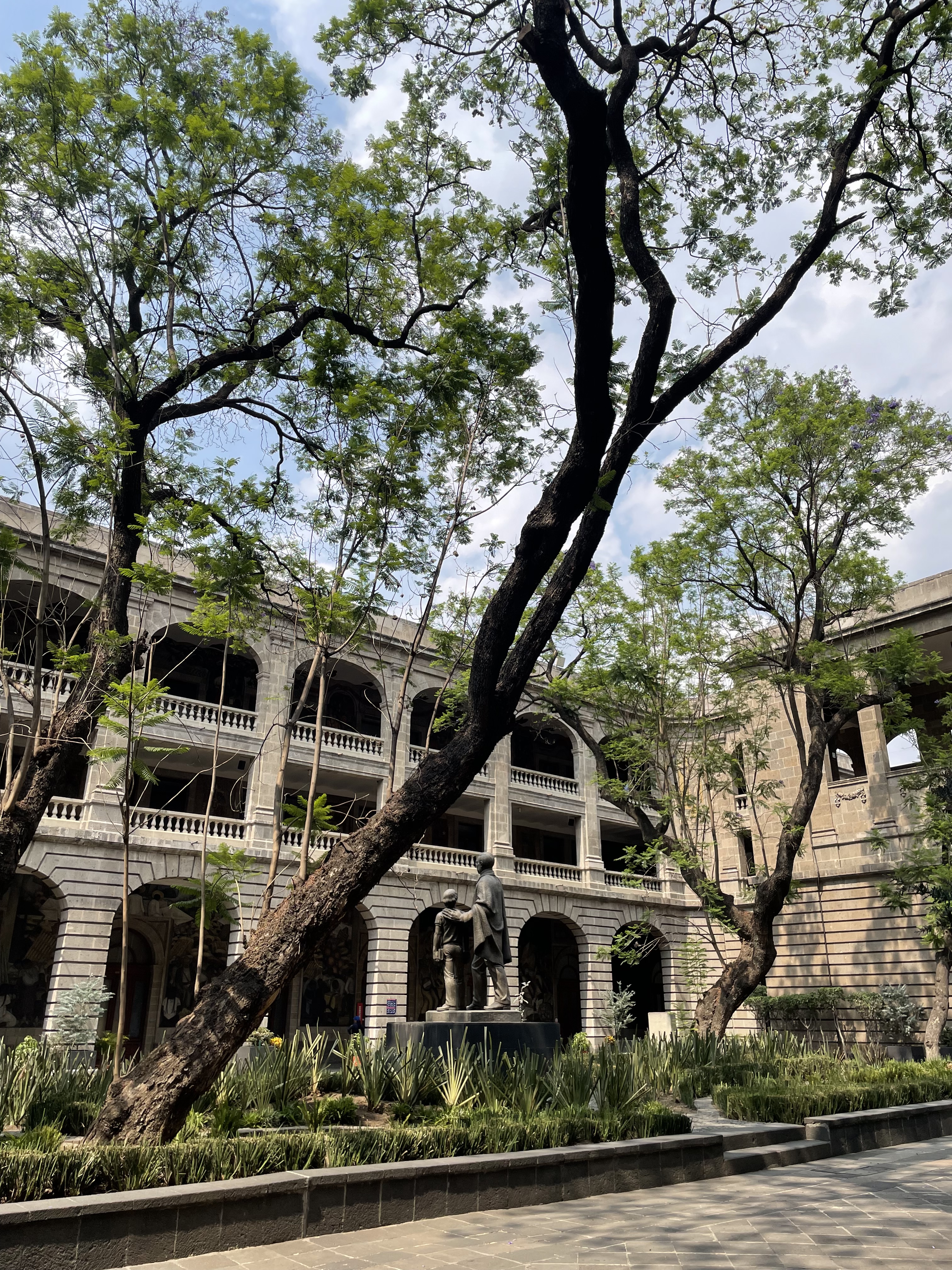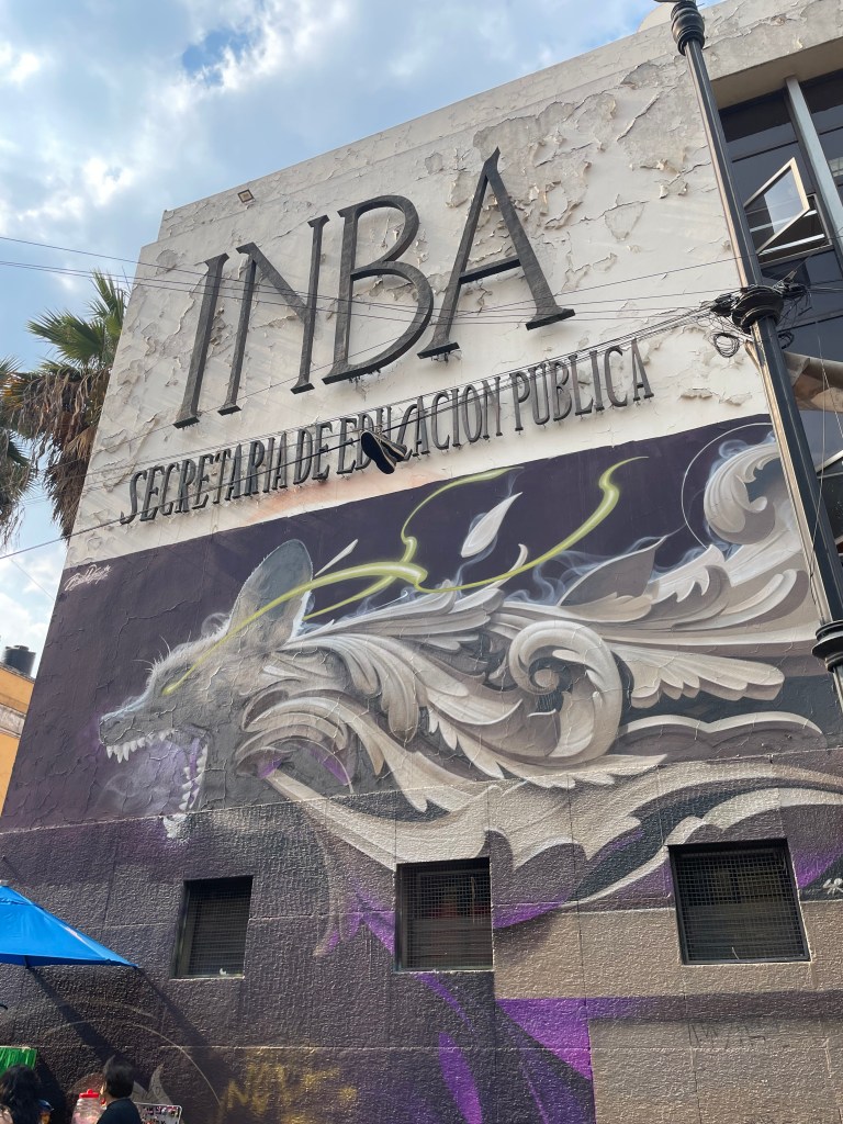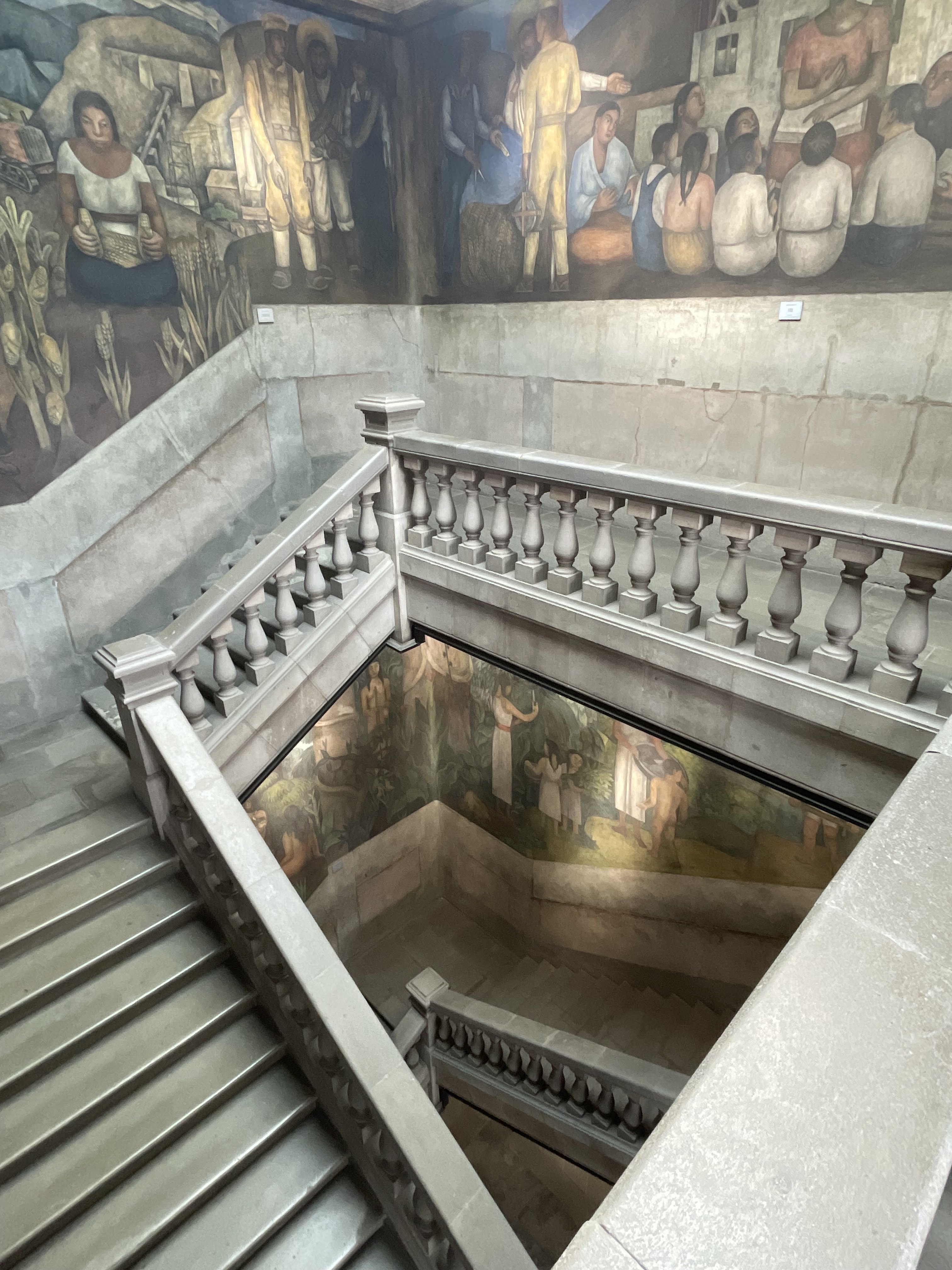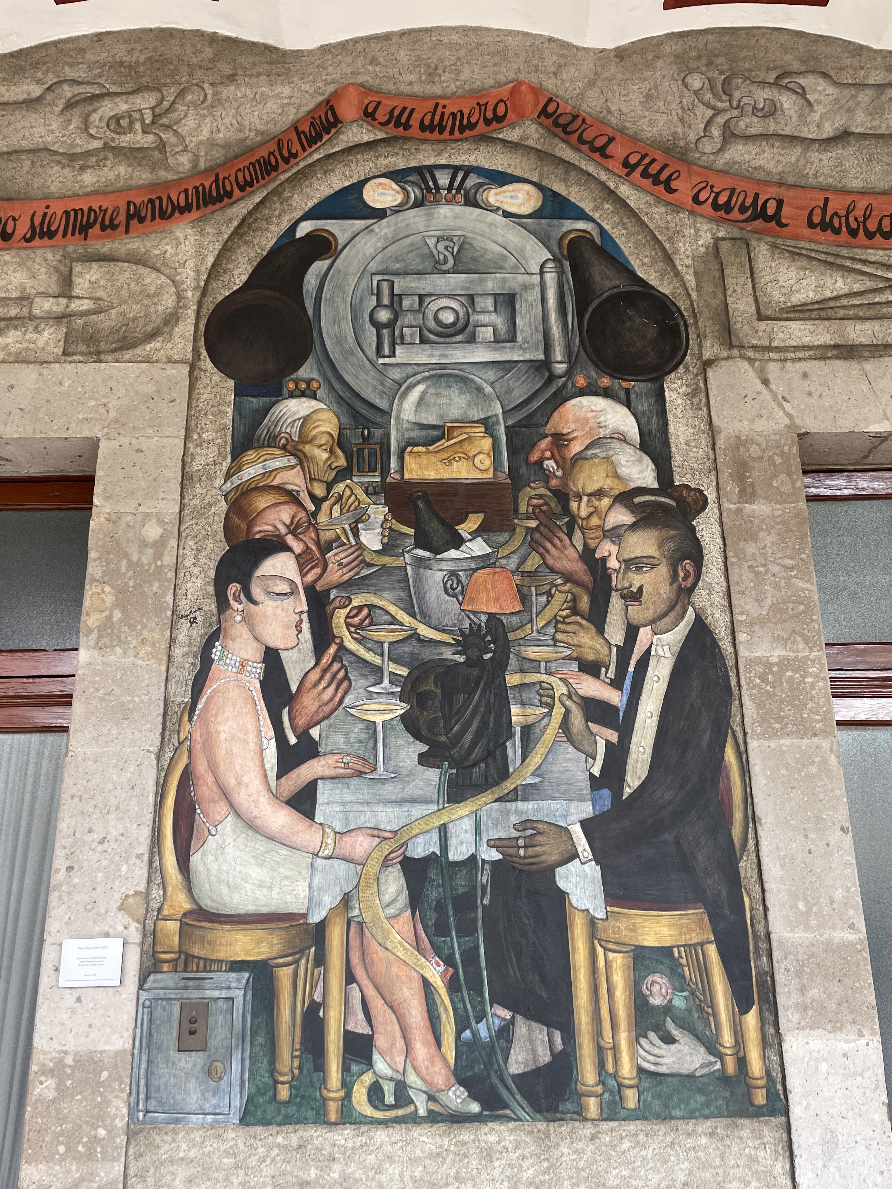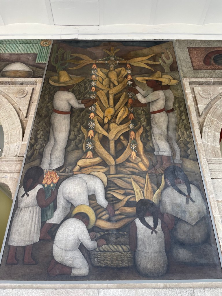 The Palacio Nacional, seat of the Mexican government, holds more examples of the Mexican muralist movement, offered on free but limited tours. Our timing was off, and in consolation we wandered a short walk north to the sprawling Secretariat of Education complex. The federal ministry serves double duty as host to the Living Museum of Muralism, a newer addition to the crowded pantheon of mural museums in Mexico City. This space excels, with thoughtful curation woven between three floors of last century’s murals. Diego Rivera is front and center, his works flowing over doorways and arches from one wall to the next. It is a strong testament to the power of the visual medium to share and to frame a worldview, a democratization of symbols and stories open to anyone who can see them. It is not a subtle message, but neither are the tweets and memes of today which disseminate with such speed.