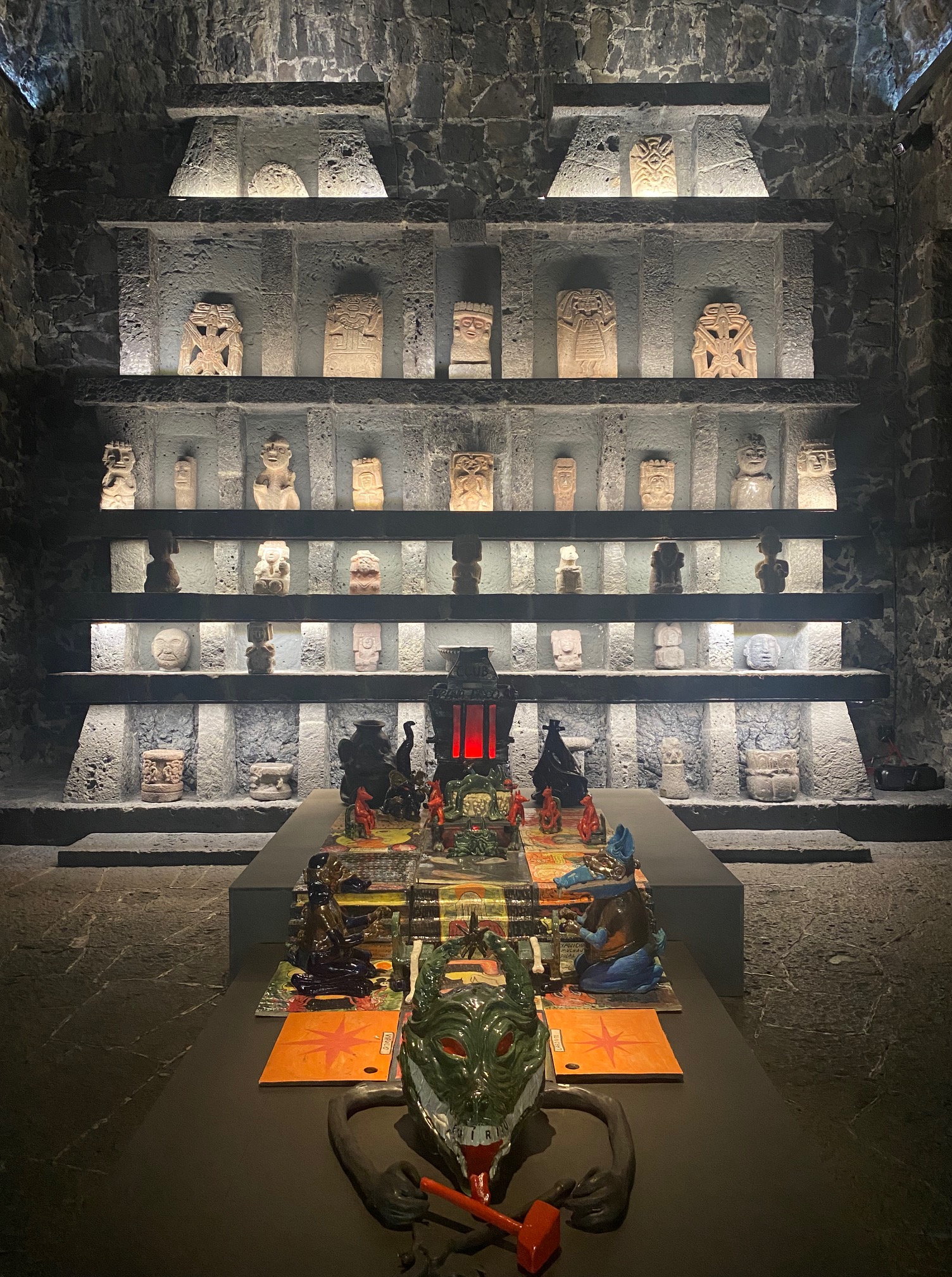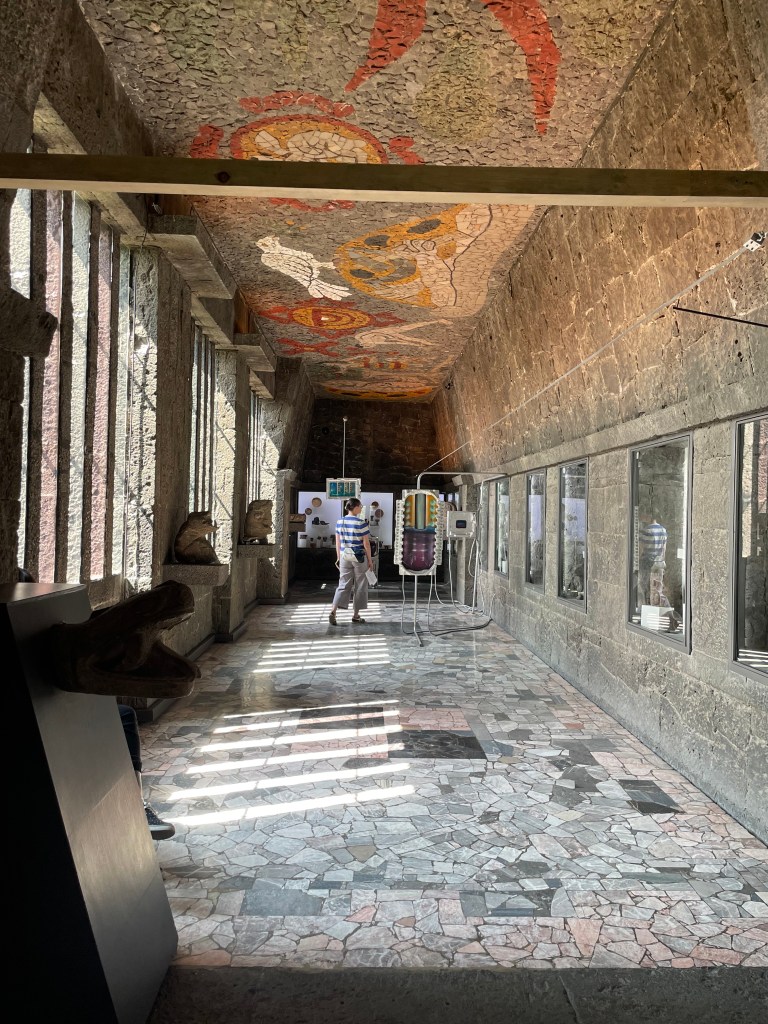 Anahuacalli opened in 1964 following over two decades of construction and the death of its patron, Diego Rivera, the same well-known muralist whose work adorns Mexico City’s public buildings. Here, Rivera’s sizable collection of pre-Columbian artifacts is on display in a varied series of chambers, including long sun-lit chambers, a soaring atrium, and crypt-like underground spaces. At the same time, the museum engages with contemporary artists, a pair of whom exhibited their work throughout the building in conversation with the old carvings, ceramics and statues. Rivera, not to be forgotten, has a number of mosaics embedded into the ceilings. The cumulative impact is mesmerizing and even daunting, an experience of a museum quite unlike any I’ve had the chance to experience before.