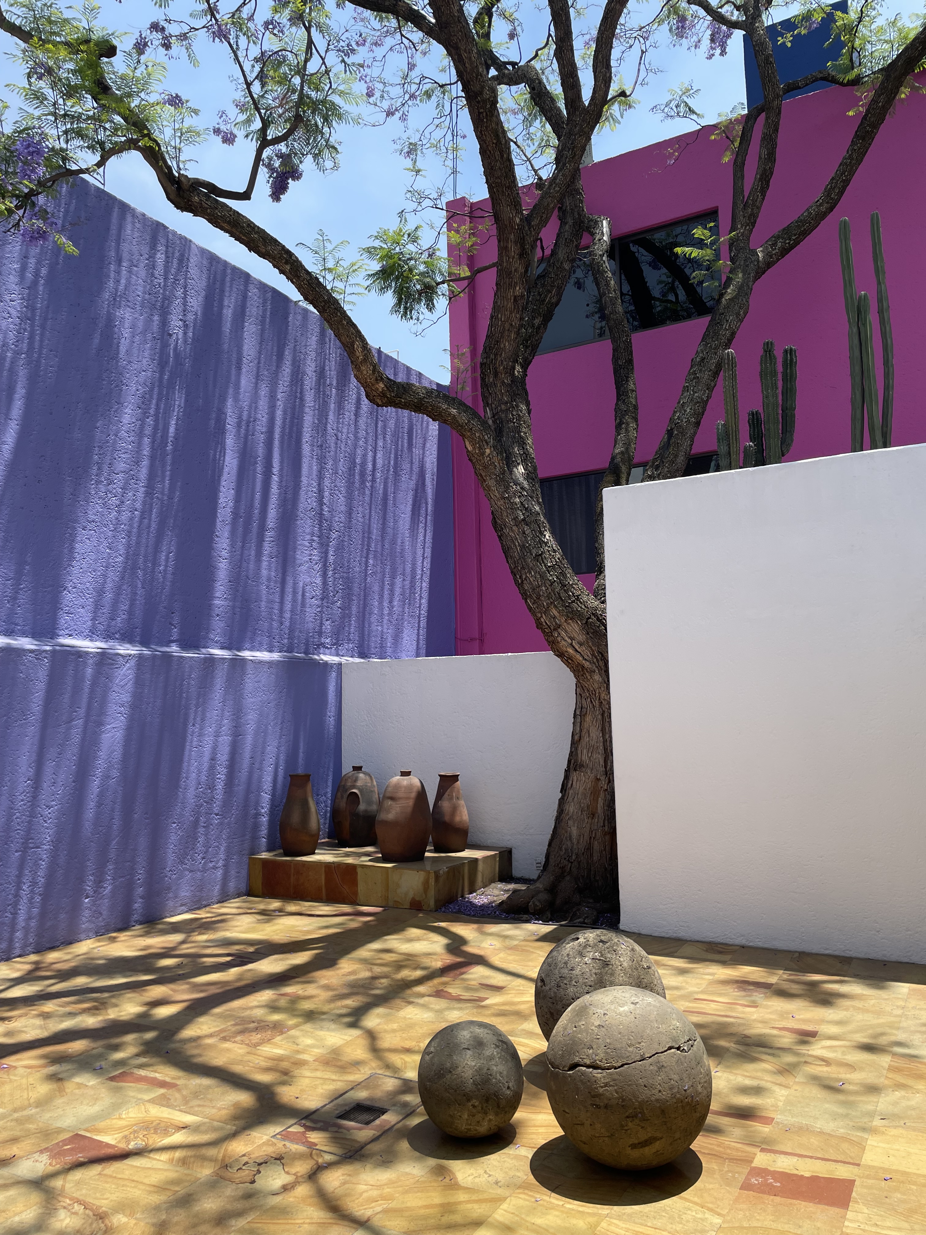 On the private architecture side, a similarly stunning experience was our visit to Casa Gilardi, a residential building dating from the mid-1970s. The building is straight lines, natural light and simple forms, clean modernism with boldly coloured walls. A towering jacaranda tree, clinging to its last burst of purple flowers in the late spring, sits in the middle of the courtyard, the original design feature that the house wraps around. Casa Gilardi is a later work of Mexican modern architect Luis Barragan, built originally for a pair of bachelor architects and later becoming the family home to one of them. Our tour guide was a son who grew up here, and spoke lovingly of the house and its history. It was a stunning space, modest, warm and rich in character, a retreat from the hectic streets of Mexico City and a highlight of the trip.