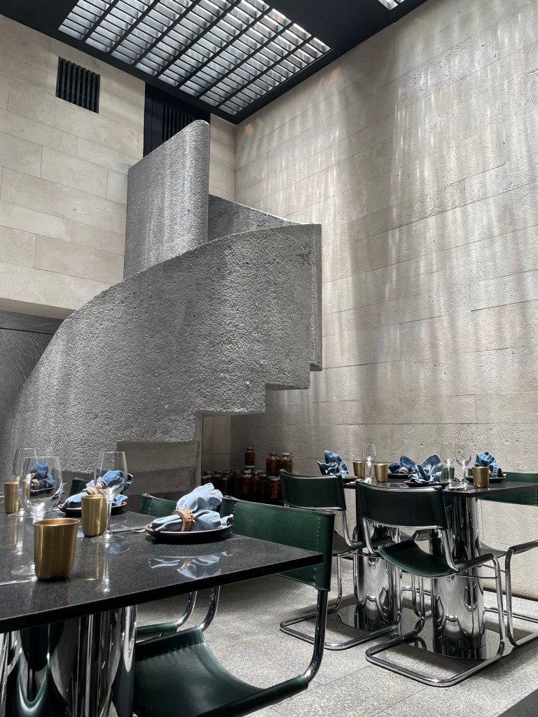 To the north in Polanco, we visited a pair of millionaire-funded legacy museums facing one another across a plaza. The first of these, Museo Jumex, has an elegant if understated design by David Chipperfield, fit for purpose with a rotating cast of exhibitions. There we saw a playful if somewhat dense (at least for me) exhibition by Gabriel Orozco, a contemporary Mexican artist. Across the street is the more dramatic Museo Soumaya, a twisting, reflective structure that seems to function as the art repository of Mexico’s richest man, Carlos Slim. While the exterior is stylish, the interior is a windowless spiral that escalates through successively tighter turns until arriving at the upper level, near the white steel rafters. The collection is undeniably impressive, but overcrowded. The central message appears to be that Mr. Slim has a lot of art, and it at times feels like we were simply wandering through his grandiose storage unit.