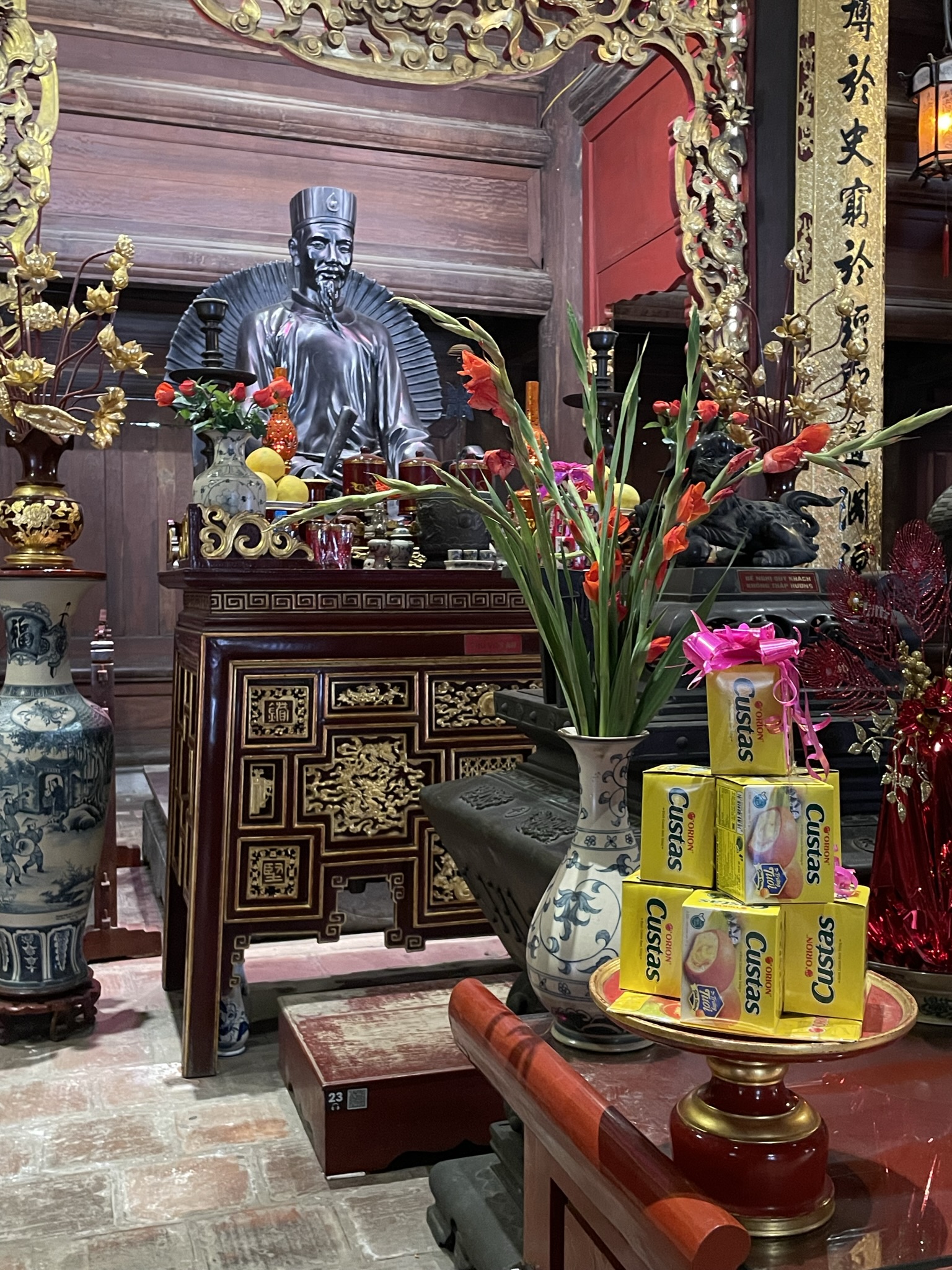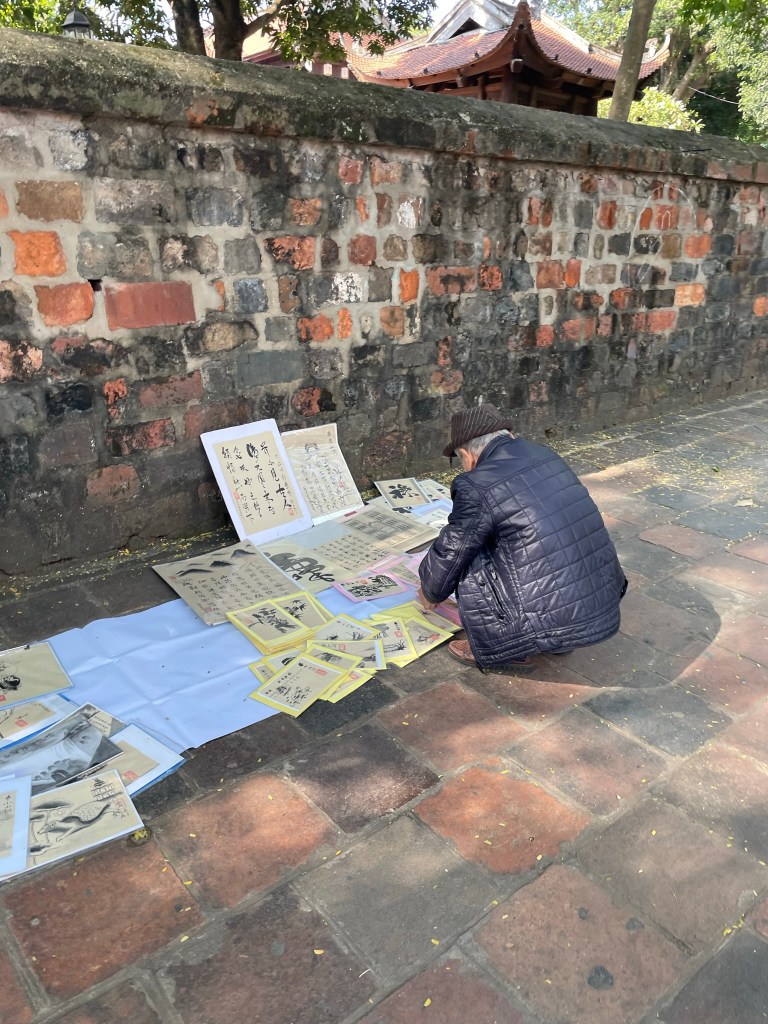 Back wandering around Hanoi after our daytrip out of the city, I was struck by the widespread ability to adapt and adopt in Vietnam. People seem adept at finding practices from other cultures and making them their own. The lacquer paintings are one example, alongside the numerous culinary examples pulled from the French colonial era – baguettes transformed to banh mi, the robust coffee industry that emerged alongside green tea, later improved upon with options like egg coffee or the addition of condensed milk. Similarly the Vietnamese emperors and courts adopted Chinese characters and used them to write Vietnamese for centuries. 17th century French missionaries developed quoc ngu, fitting the Latin alphabet to the local language, though it was only in the early 20th century where it became, ironically, a tool of the Communists to spread literacy (and propaganda). This brand of fusion seems culturally ingrained, and is part of what makes it such an intoxicating country to visit, one which keeps people from around the world coming back.