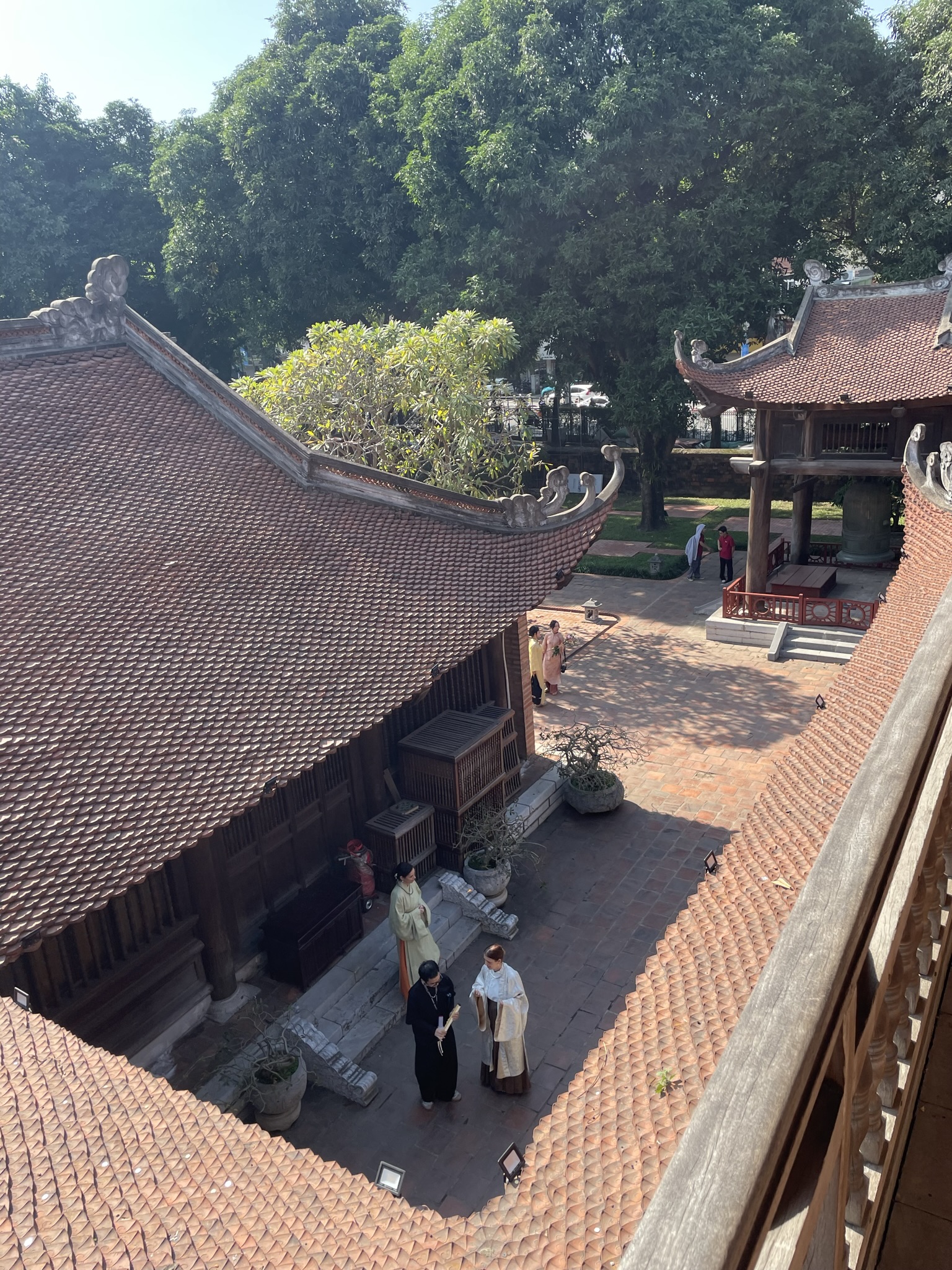 Walking through the city near Ba Dinh Square eventually led us to Van Dieu, known in English as the Temple of Literature. Van Dieu is a thousand-year old complex dedicated to the value of education and, to a degree, service of the state and testament to self improvement. Behind the complex’s walls, a restorative green space houses a temple with a series of courtyards. Each is enclosed and marked by a number of gates: a central gate for those who had proven their worth, and side gates for the aspiring students. The students, having succeeded in a series of grueling exams in their home town and provinces, arrived to the capital for the fifth, and final, imperial exam. This is the one that would determine the fate of their career path, potentially serving as mandarins for the imperial court or administrators across the realm. When it was time for the exam, the courtyards of Van Dieu would fill with low bamboo platforms, covered over by an arching roof. Each student would have one to themselves, fitted with paper, brush and an inkstone, where they were sequestered to test their learning.